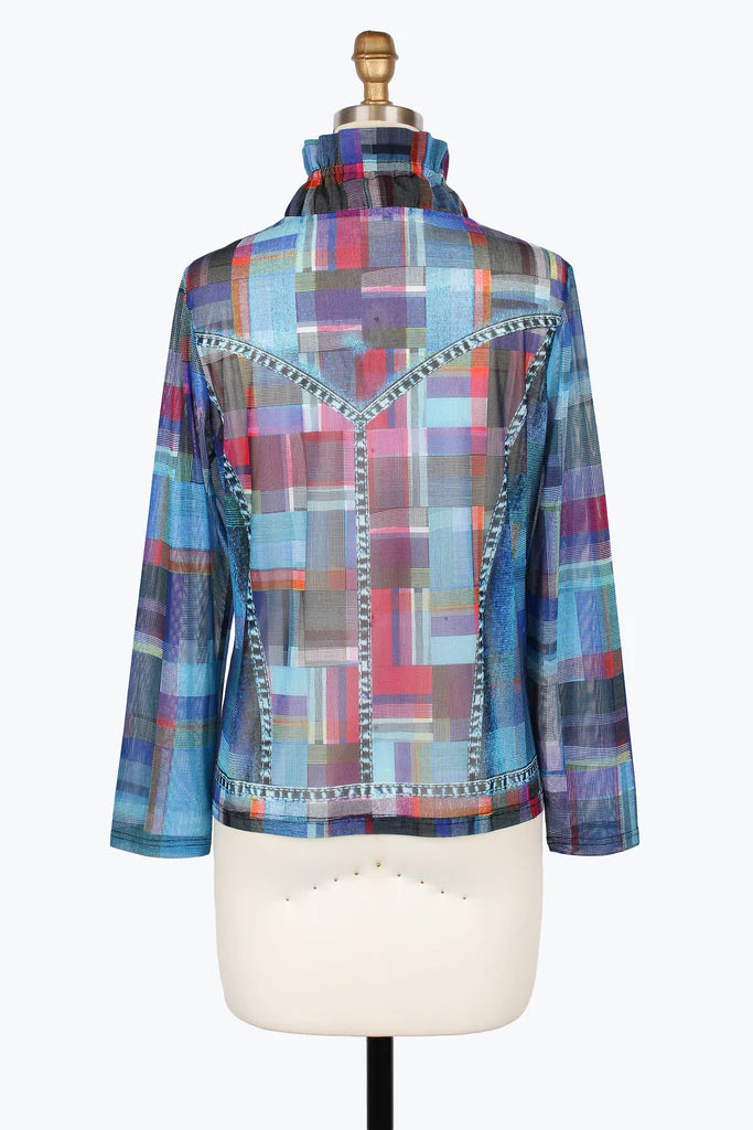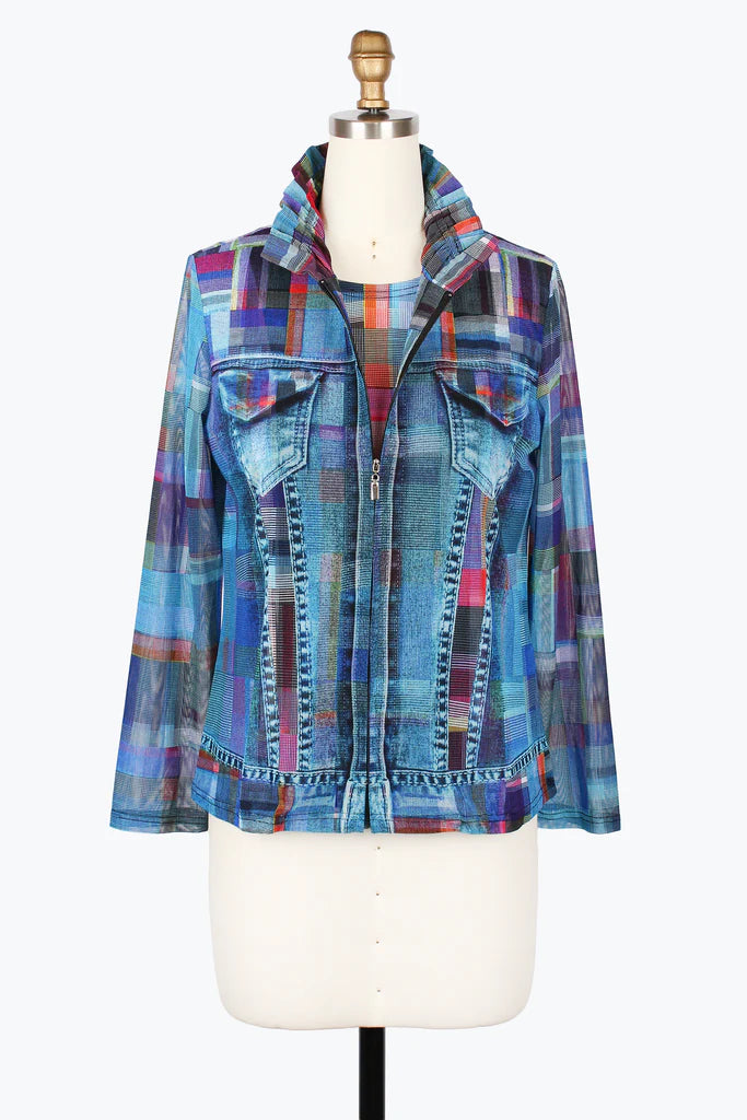 Damee 31449-DNM MULTI-PLAID DENIM MESH TWIN SET