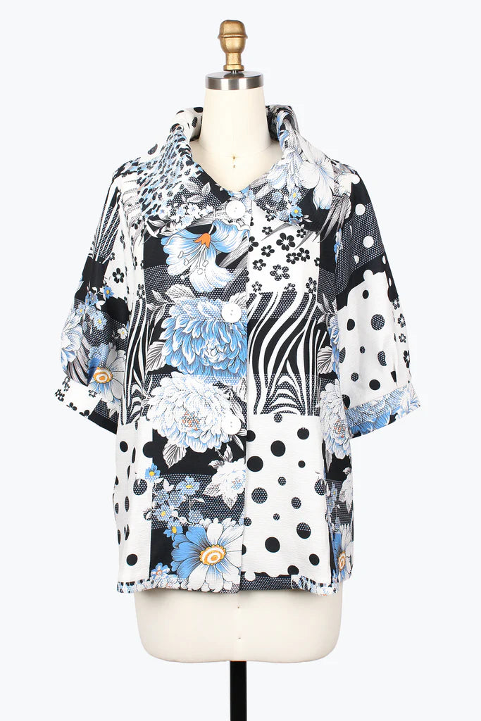 Damee 5035-BLU COLLAGE ART SWING JACKET