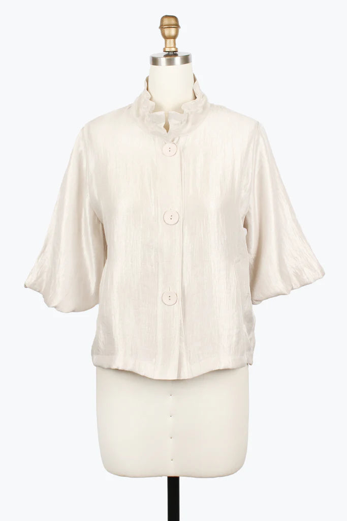 Damee5081-WHT PUFFY BELL SLV SHORT JACKET