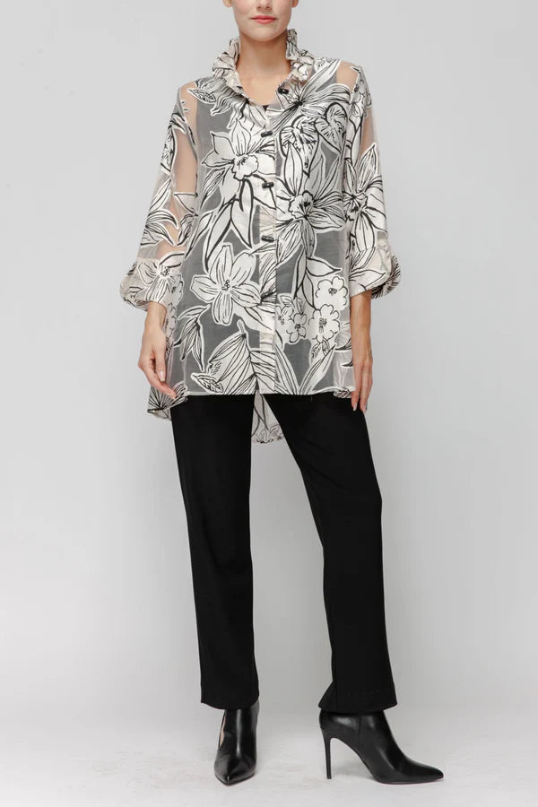 WIRE COLLARR BLOUSE W BLACK DETAIL