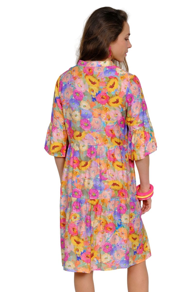 BANDED COLLAR DRESS W/ BELL SLEEVE AND DUAL TIER DETAIL