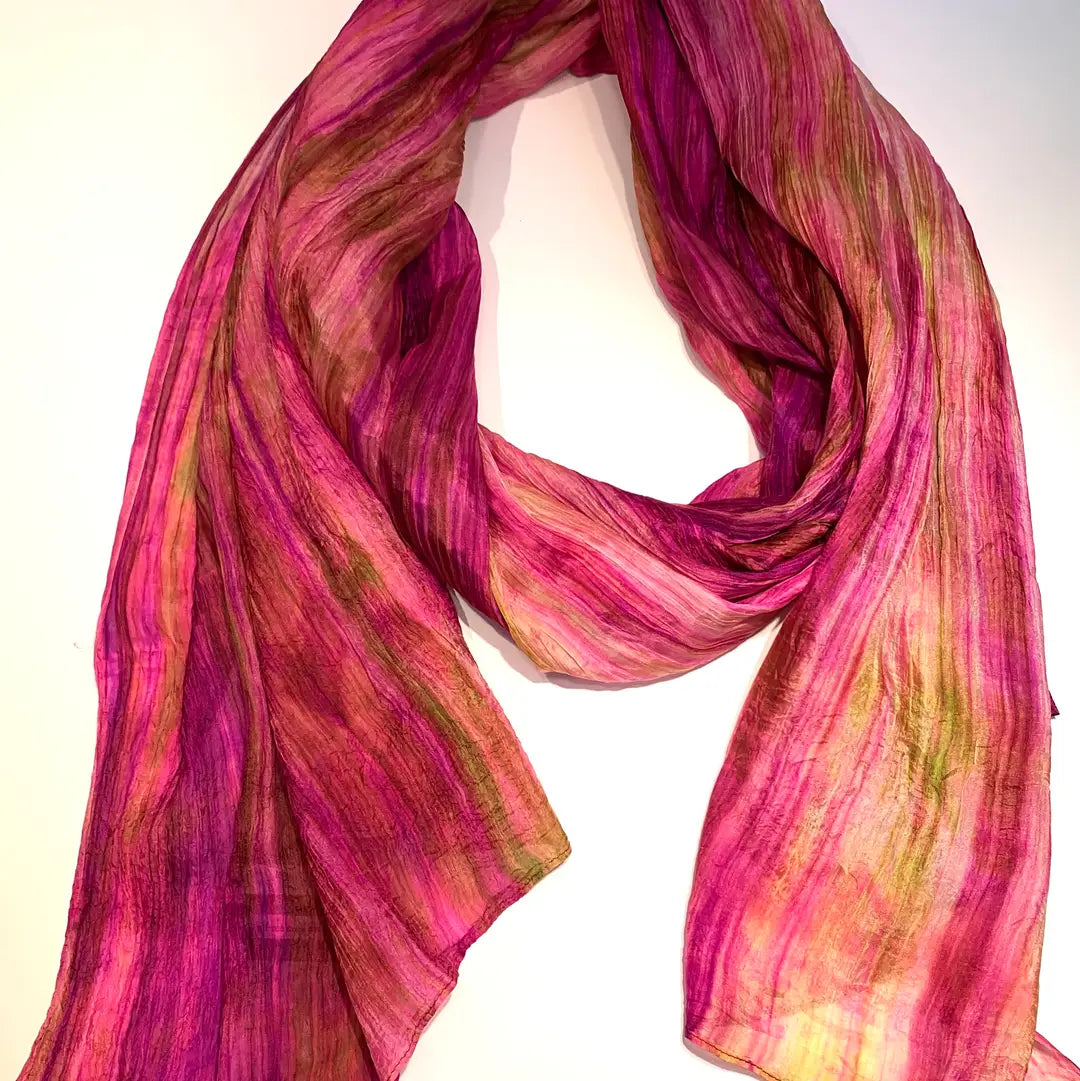 • Made from naturally farmed and pure Mulberry silk. Each hand-woven scarf is individually hand-dyed and carefully hand-finished by our own artisans creating truly one-of-a-kind pieces. A stylish fashion piece that is also incredibly soft and lightweight.