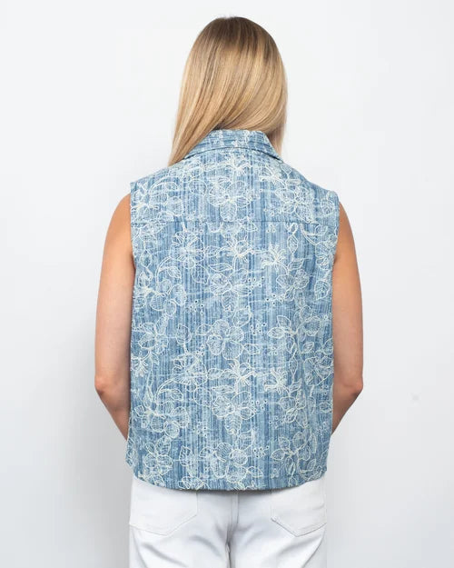 Snoskins Embroidered Denim Collared Vest 29750-26