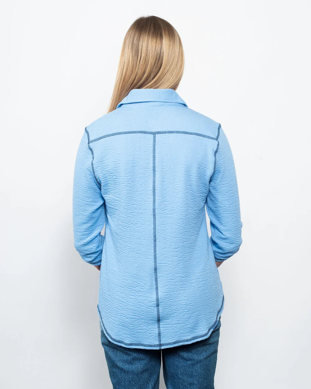 Snoskins Seersucker Collection Button Shirt with shirttail & ¾ Tab Sleeves, Contrast 5 Thread 66570-26
