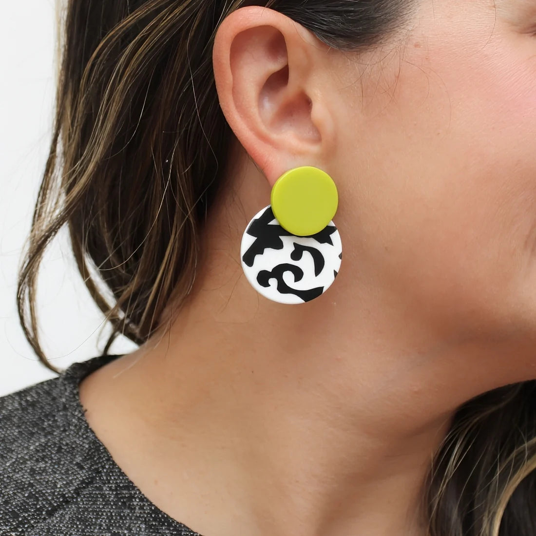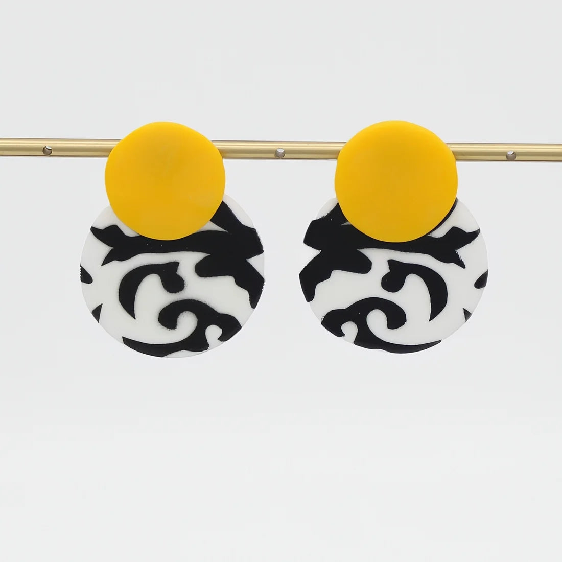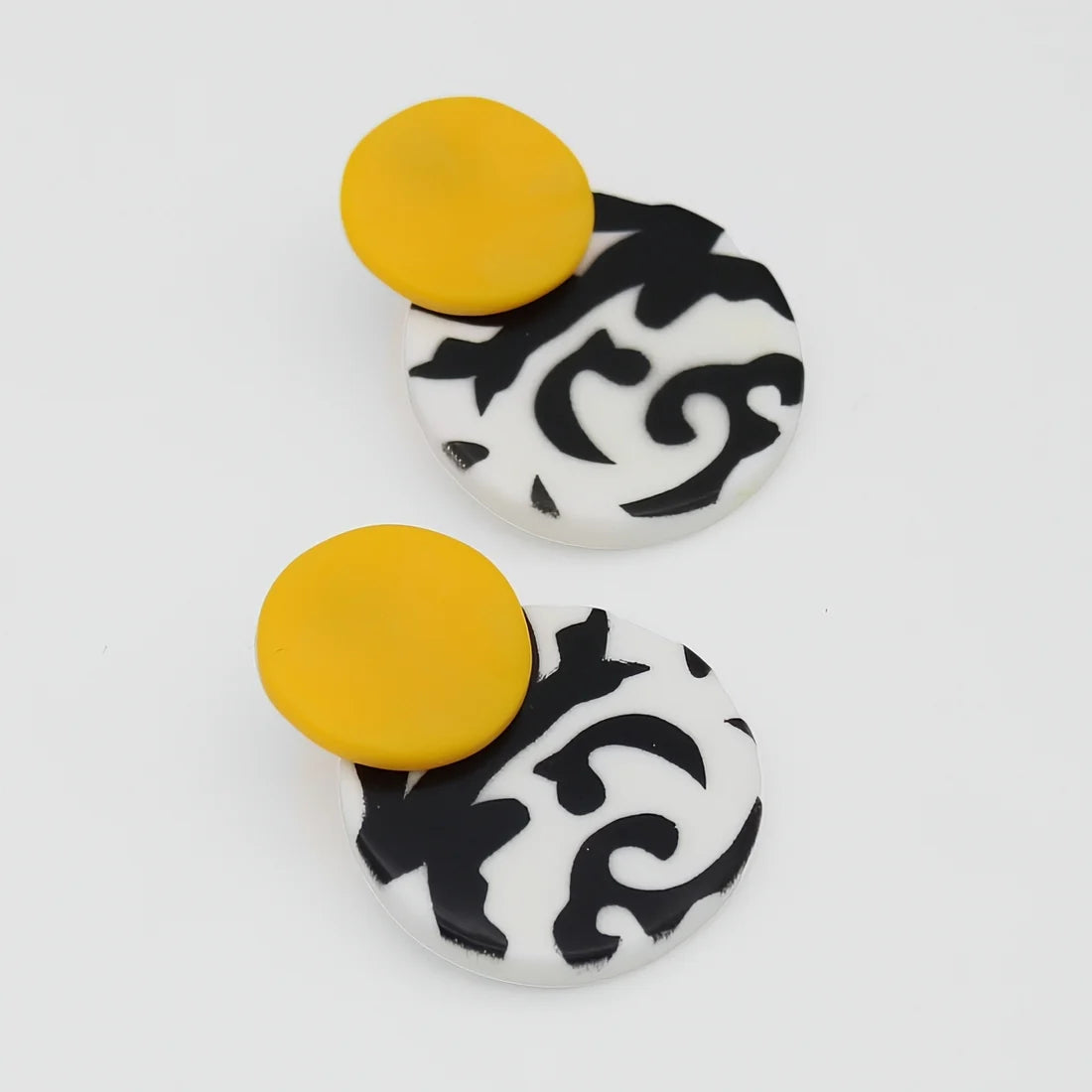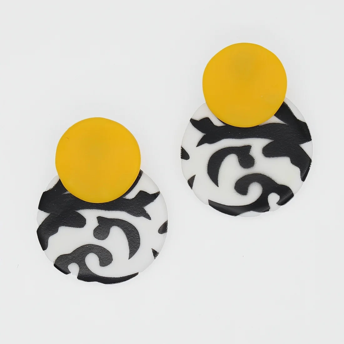 Make a statement with these Black White and Yellow Lola Earrings! The hand-painted design on a white background adds a classic touch, while the black and yellow accents make them truly unique. Perfect for any occasion, these earrings are a must-have for your jewelry collection.