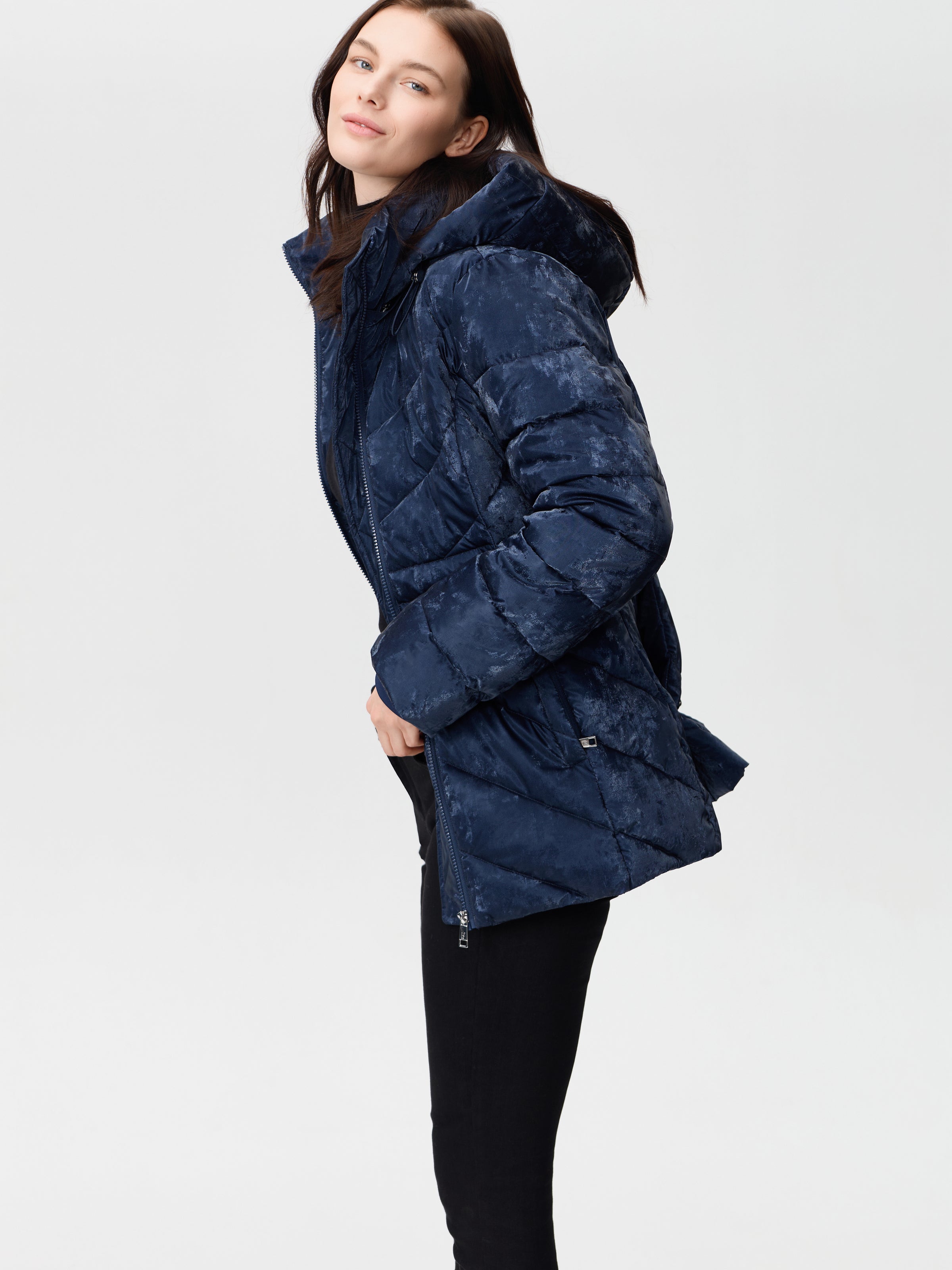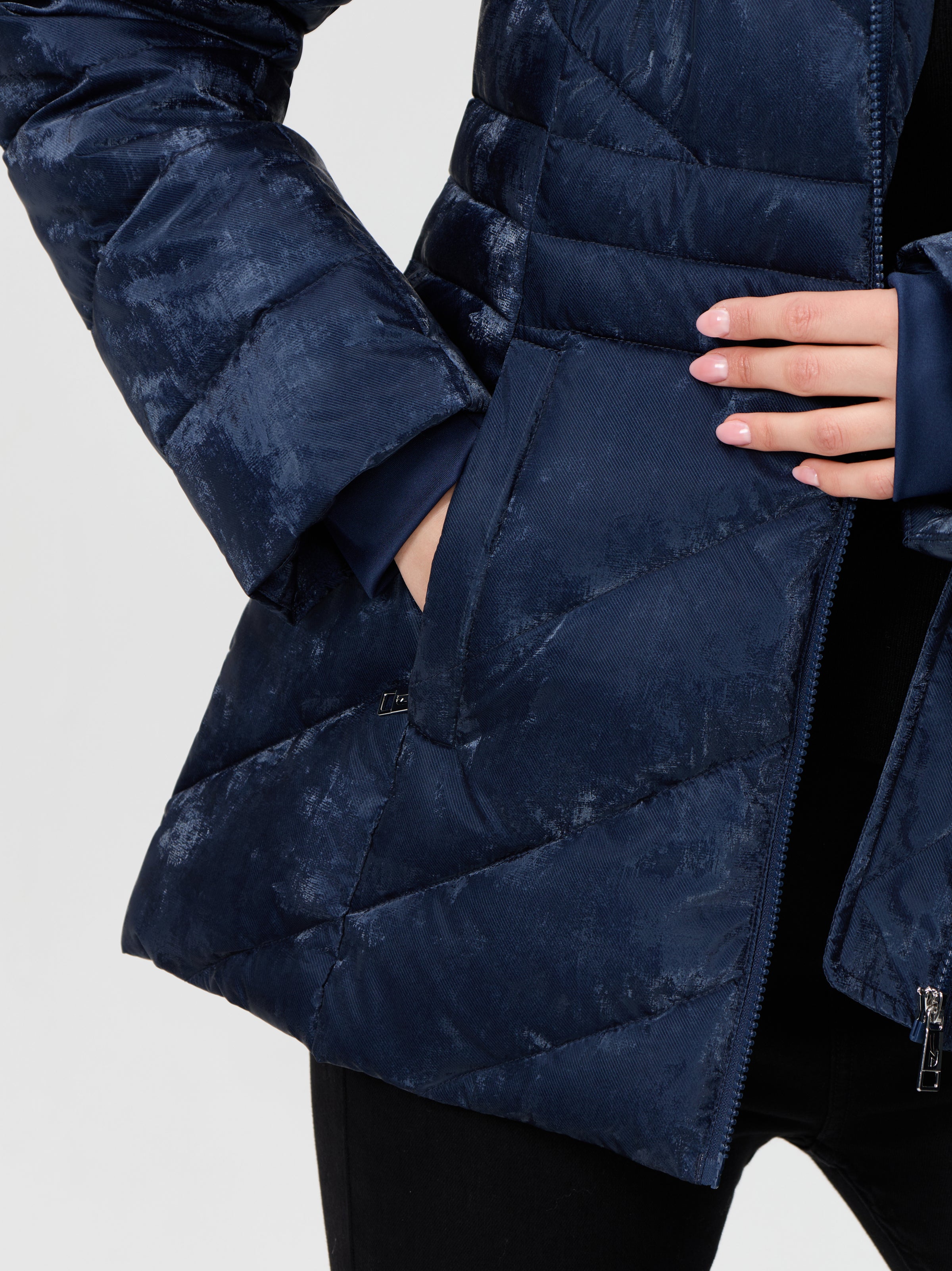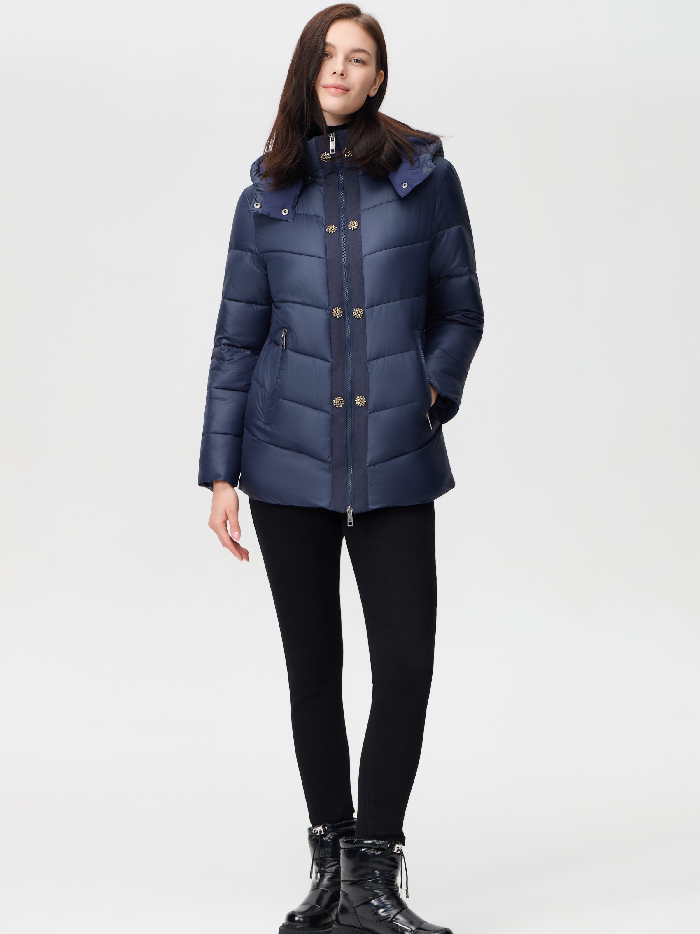 Nikki Jones Detachable hooded pufer jacket 9005-612 Navy, Silver