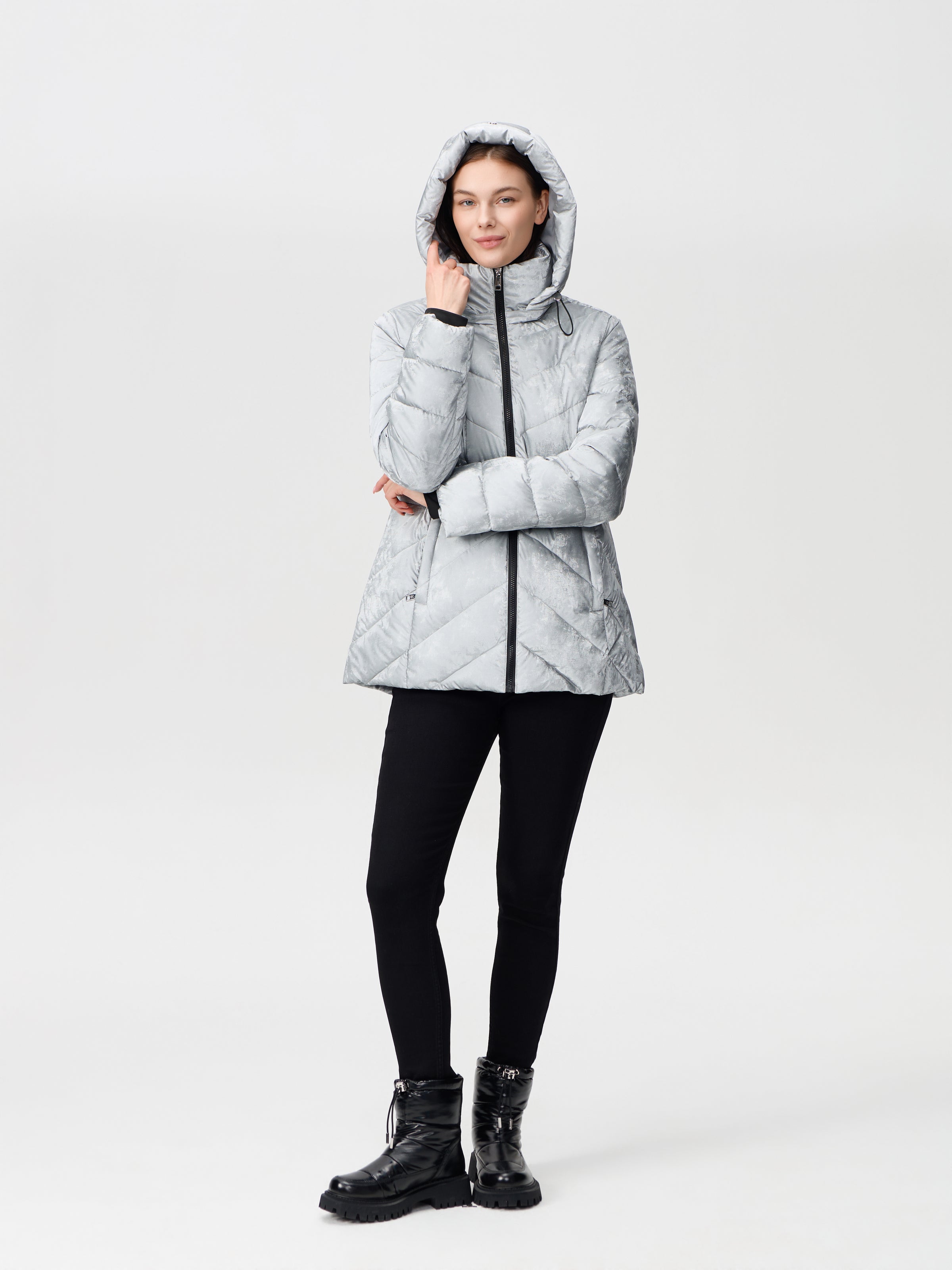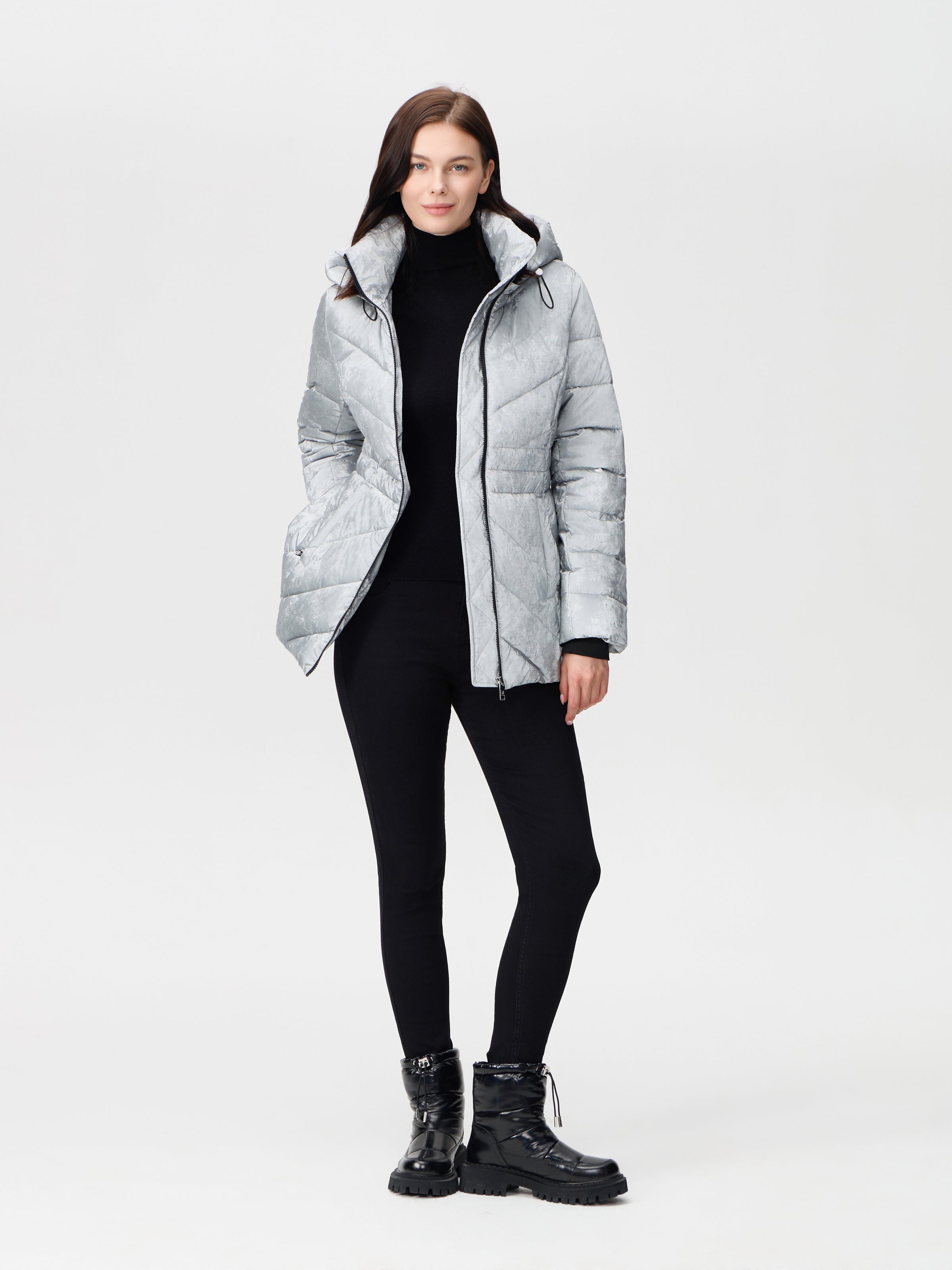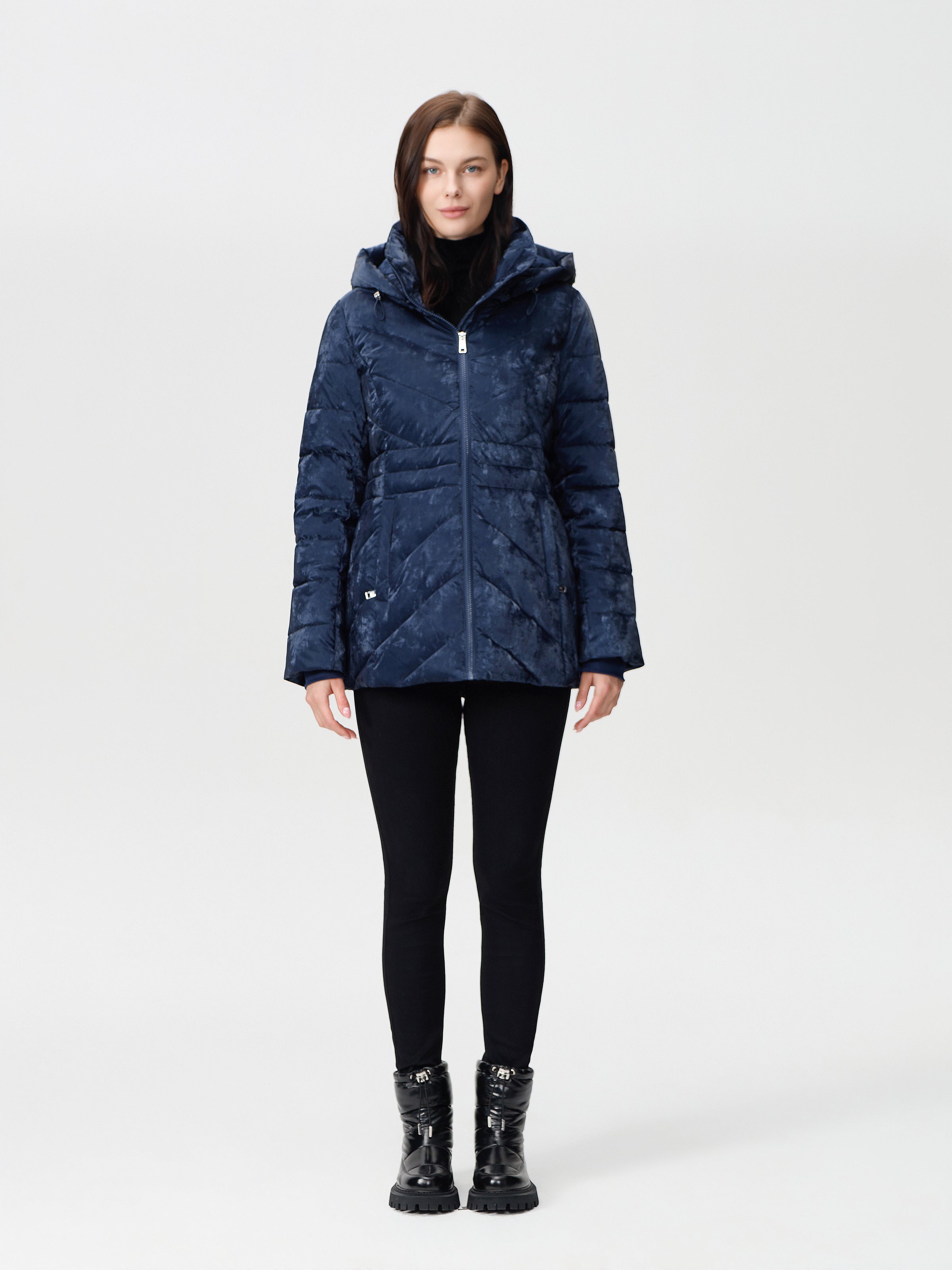 Nikki Jones Detachable hooded pufer jacket 9005-612 Navy, Silver