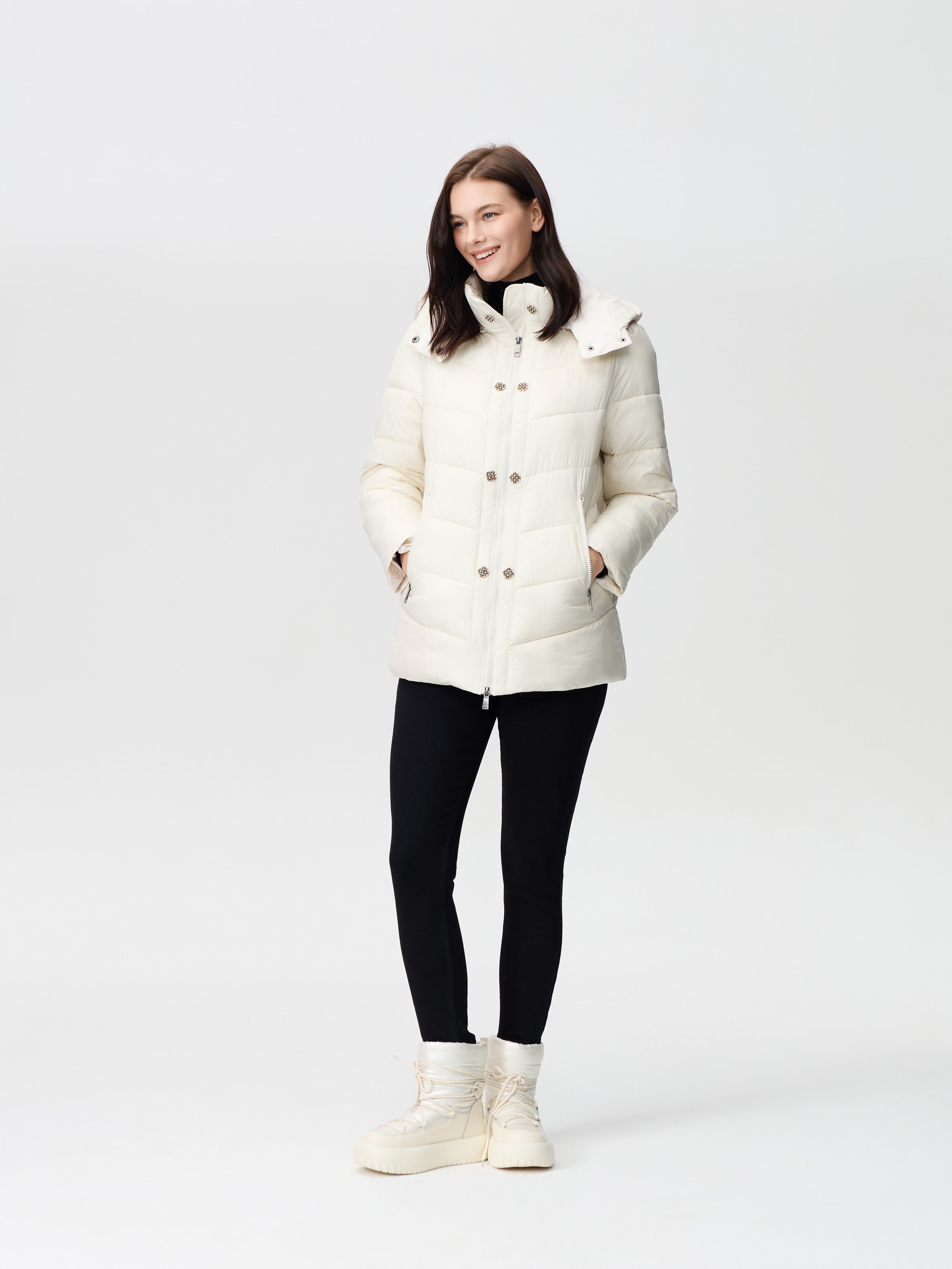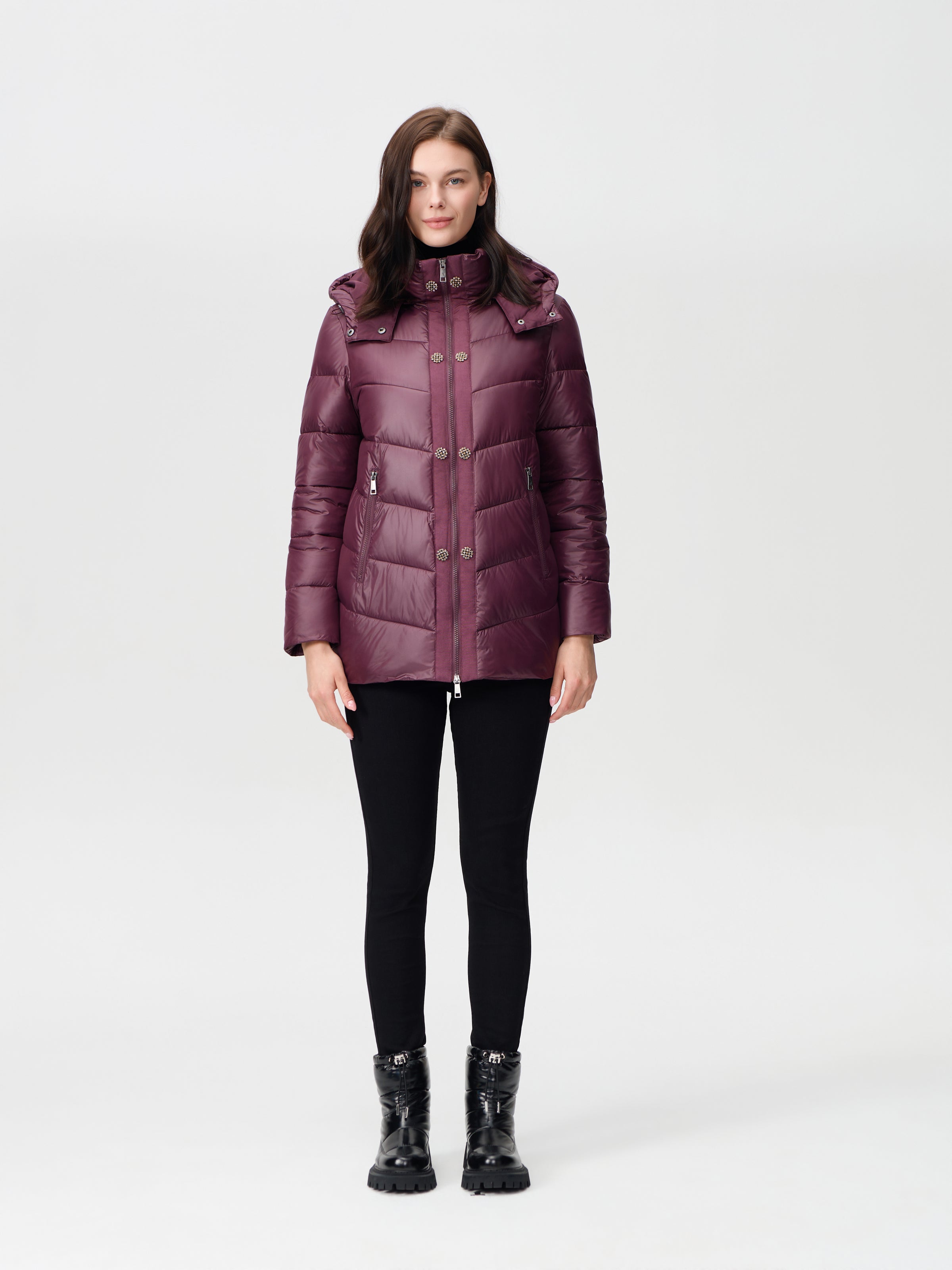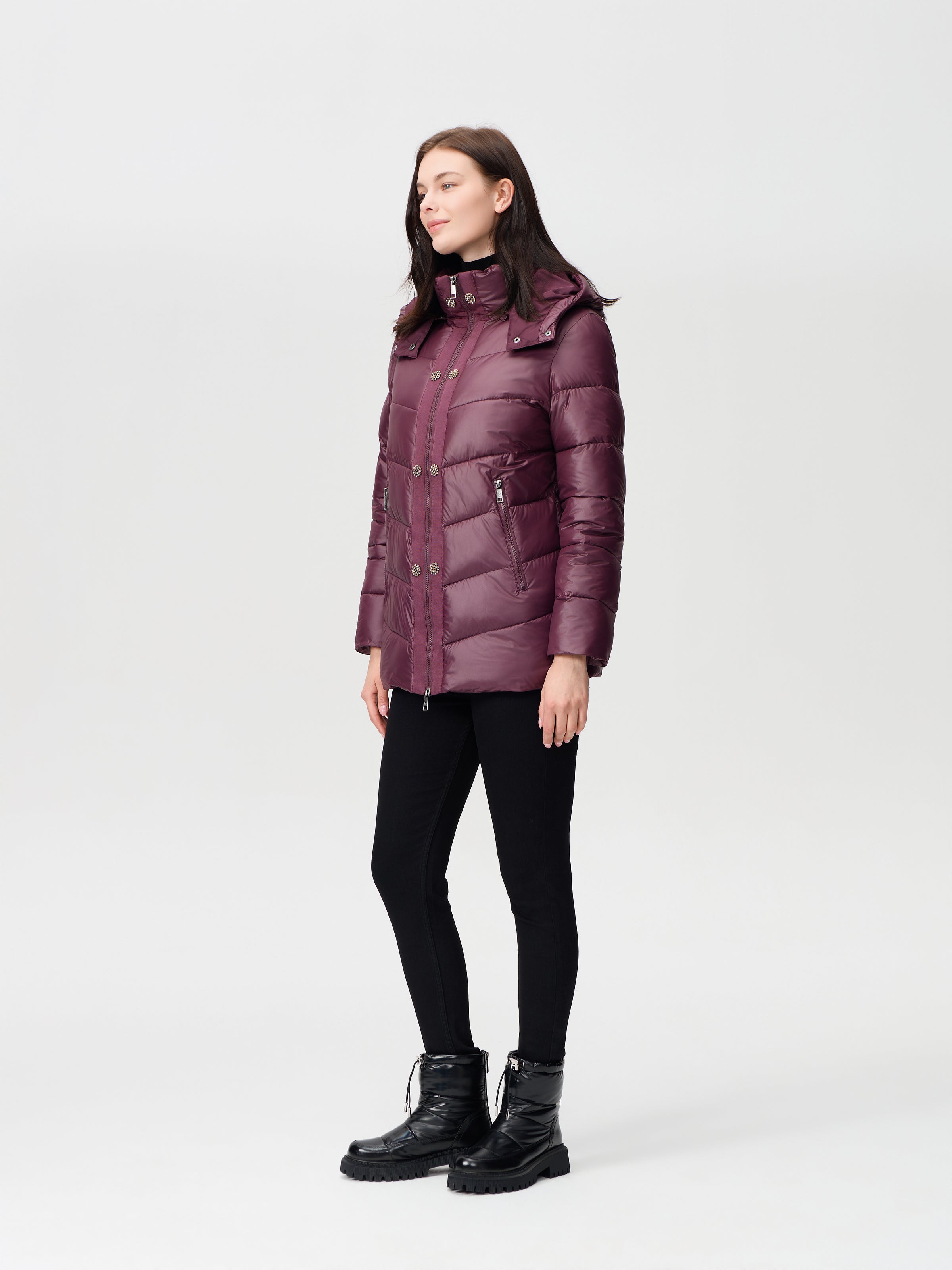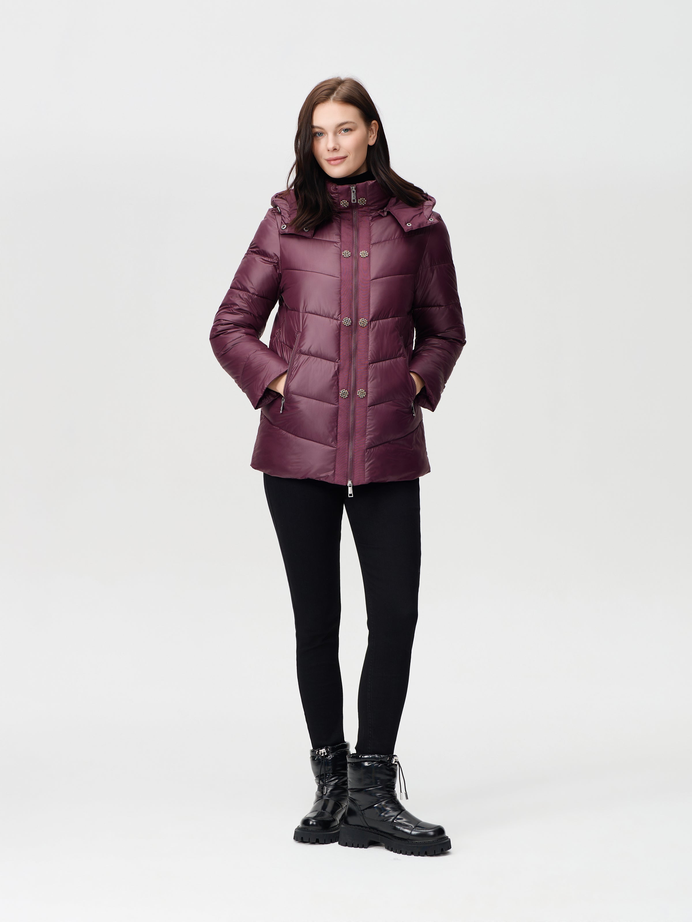 Detachable hooded pufer jacket in velvet shimmer fabric