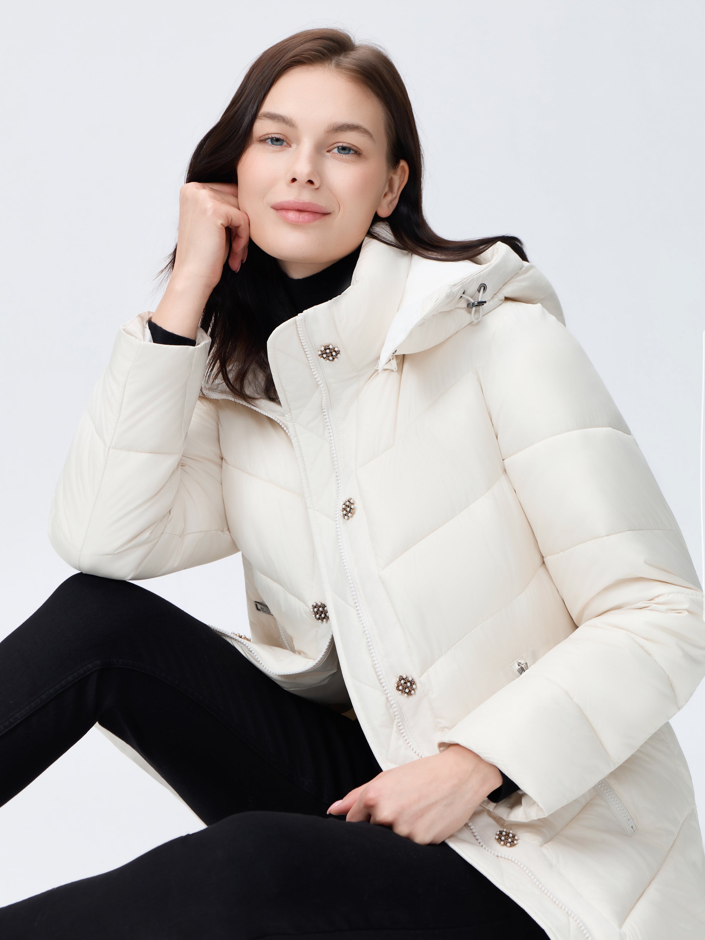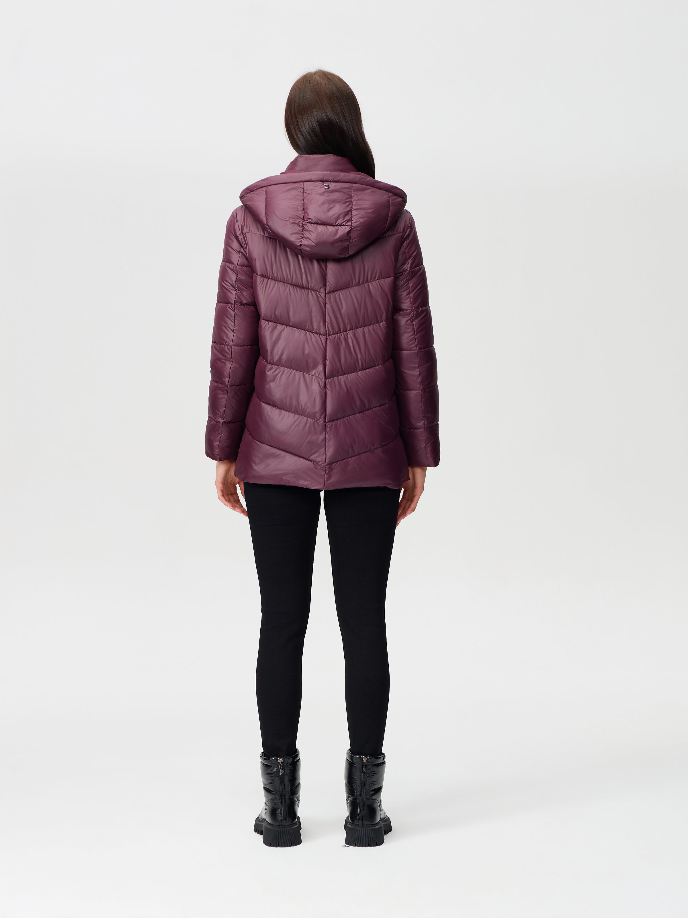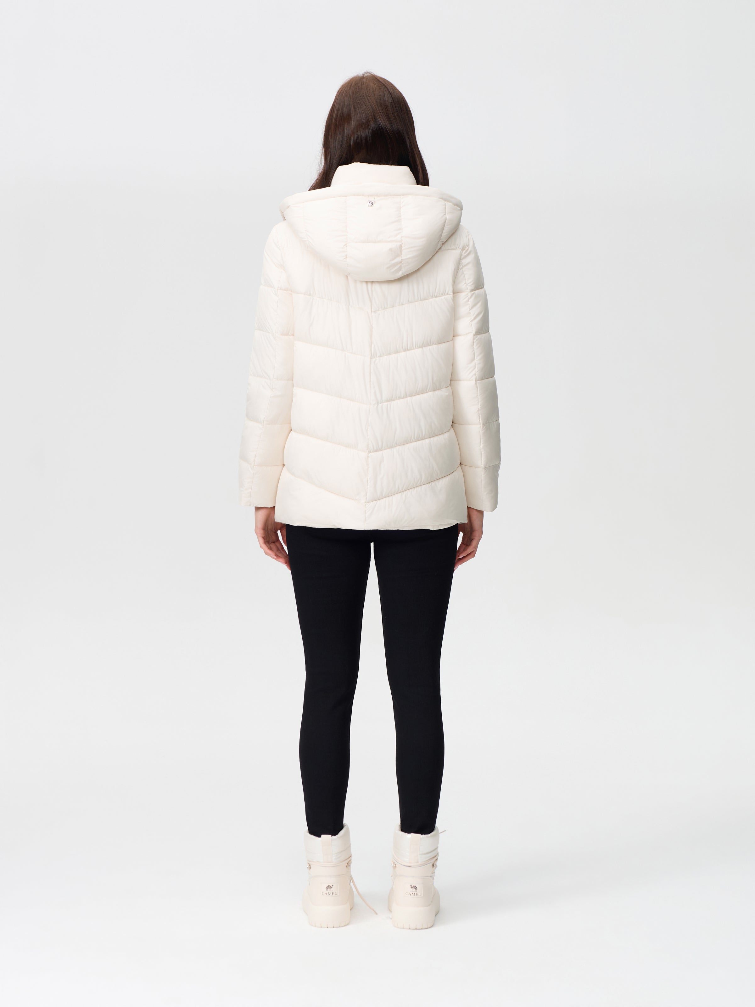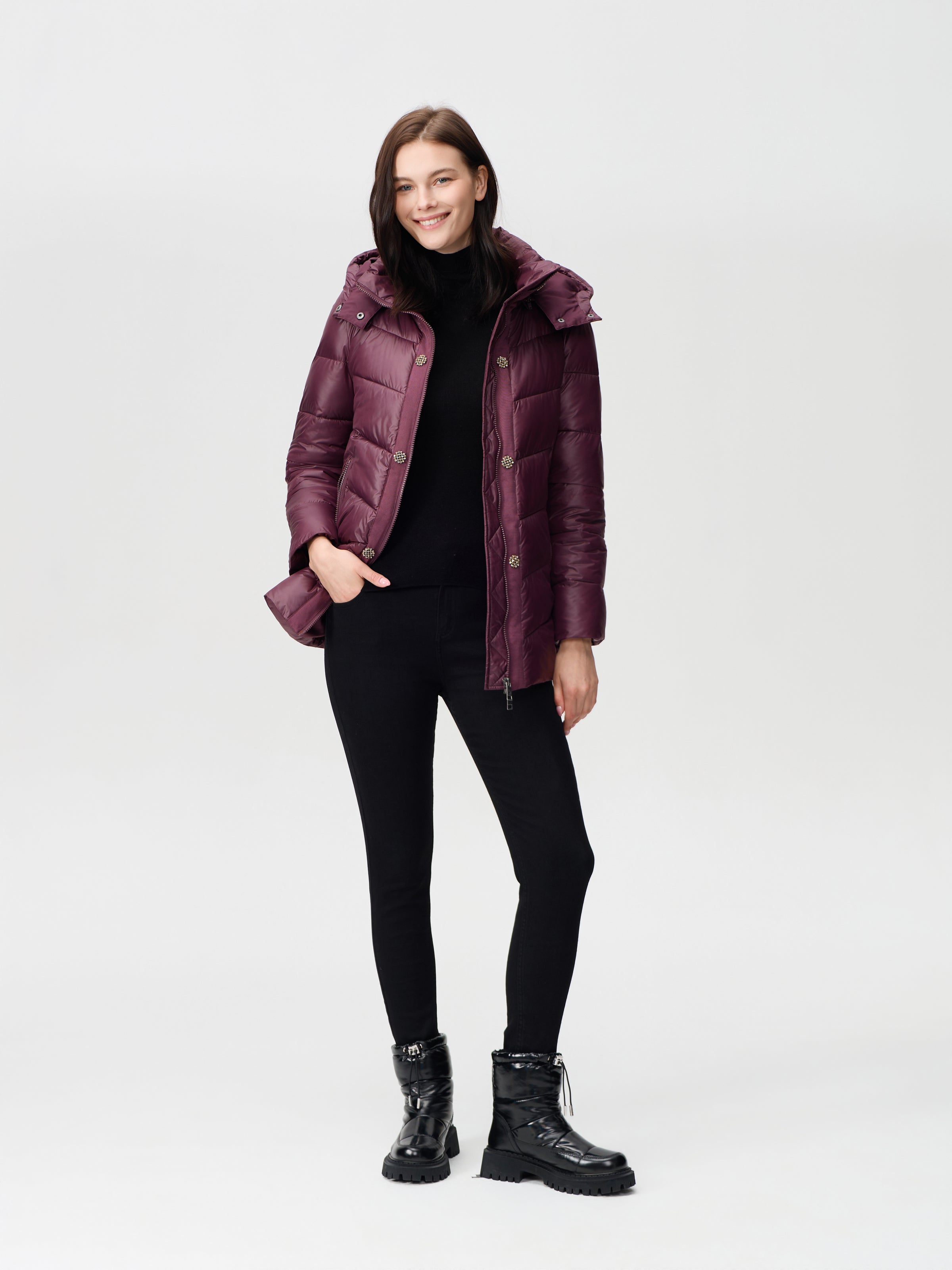 Detachable hooded pufer jacket in velvet shimmer fabric