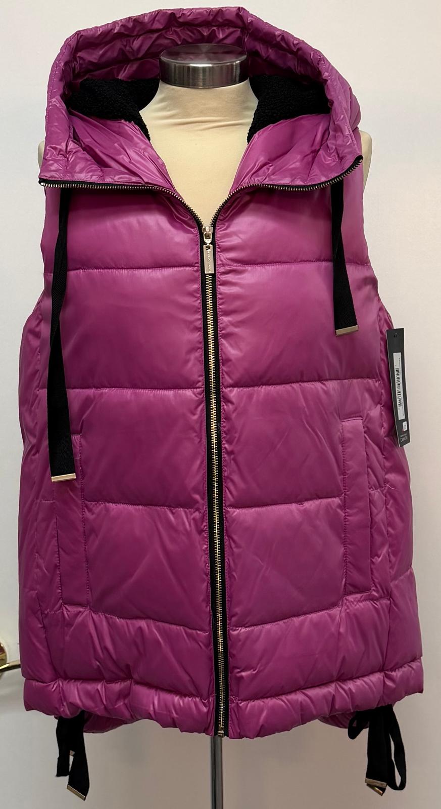 Nikki Jones Quilted High-Low Vest with Grosgrain Trims and Oversized Fixed Hood K5340RO-213