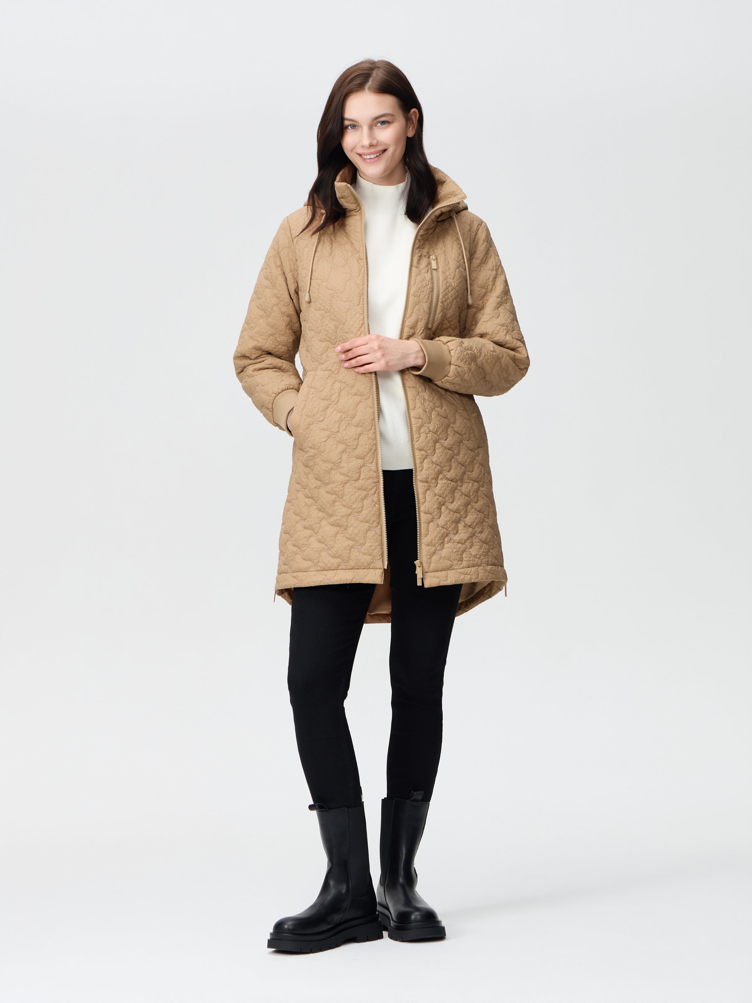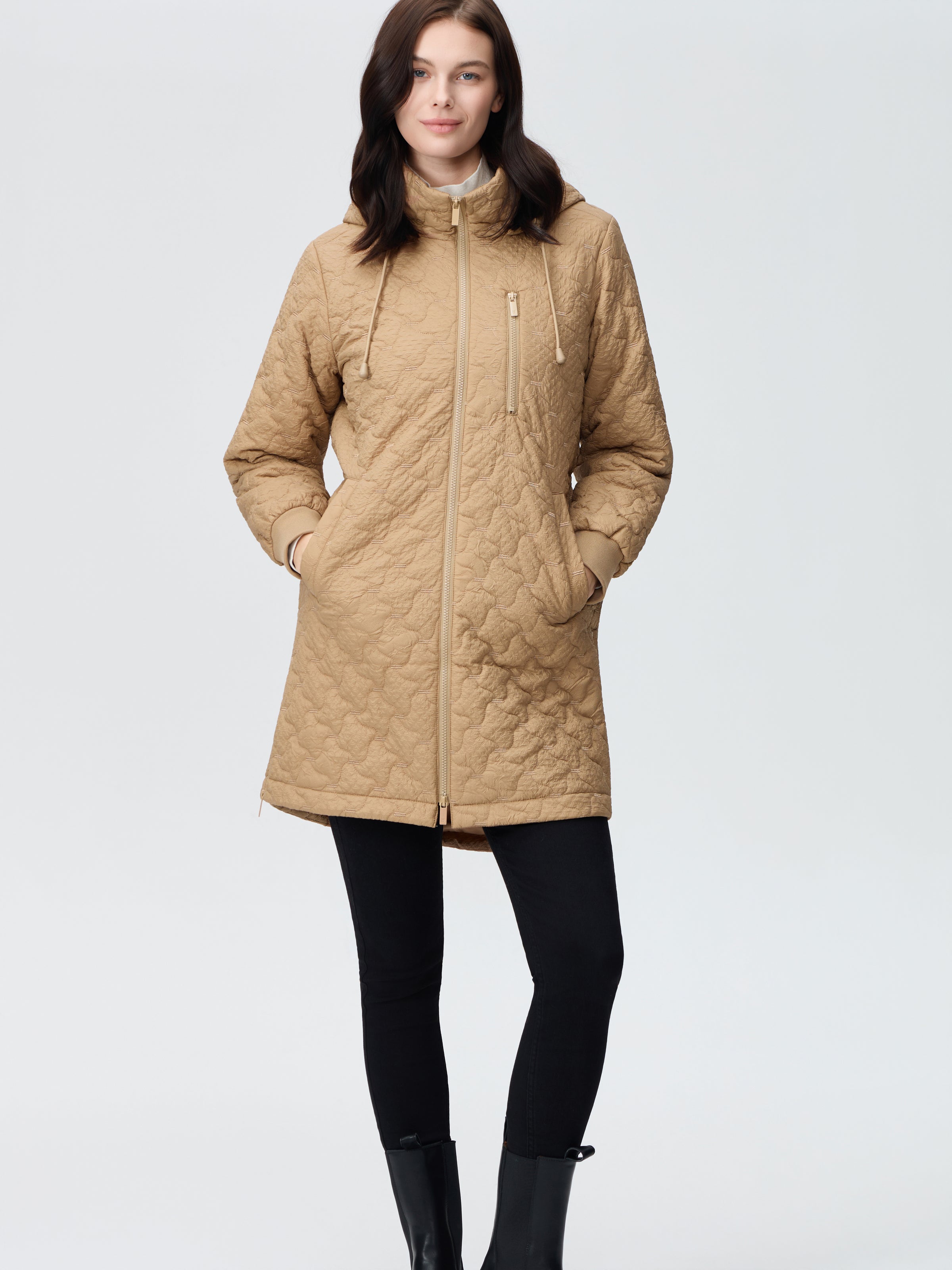 Nikki Jones Light weight hooded jacket in embroidered crinkle 9001-610 Bblac, Tofee