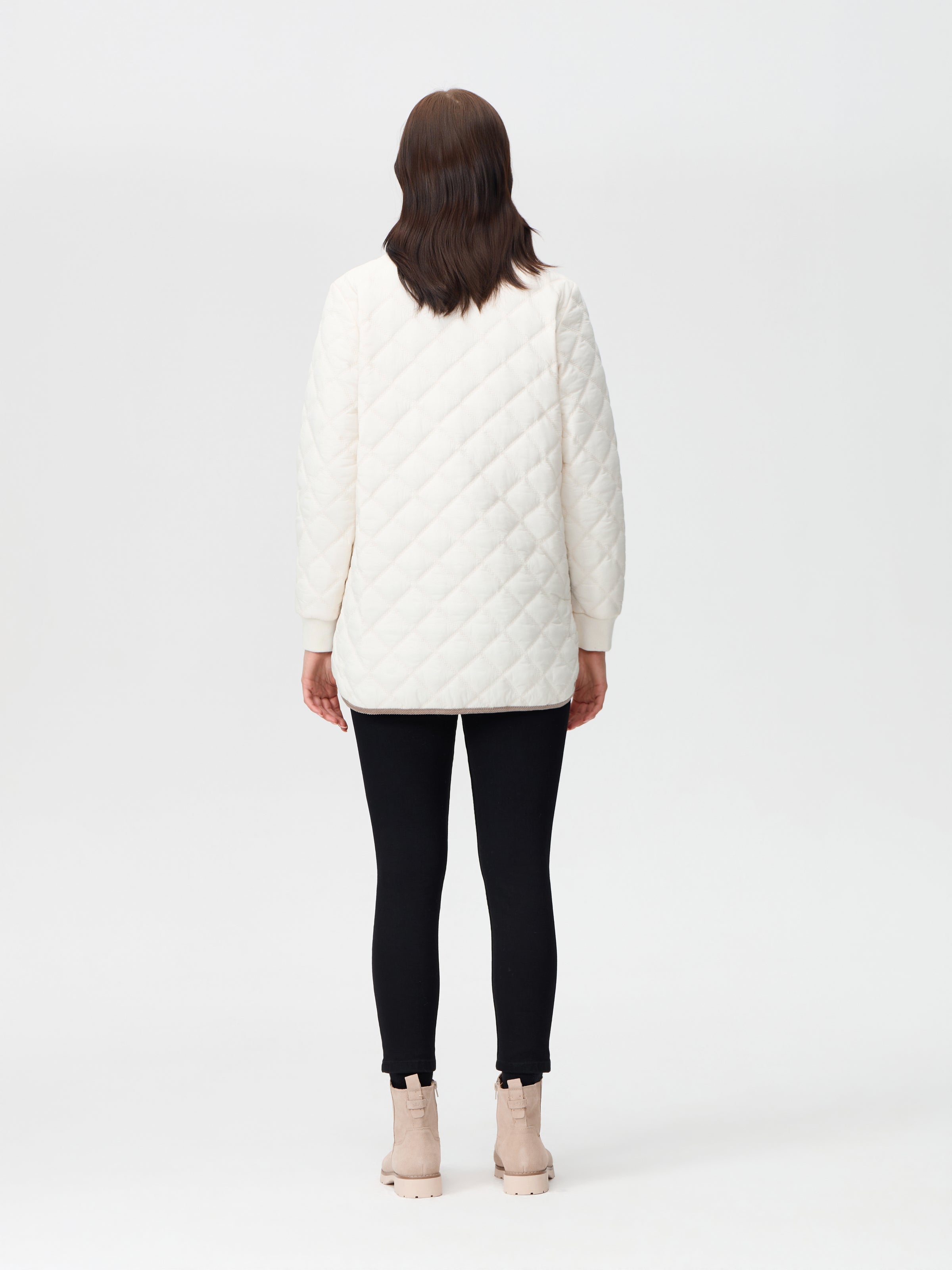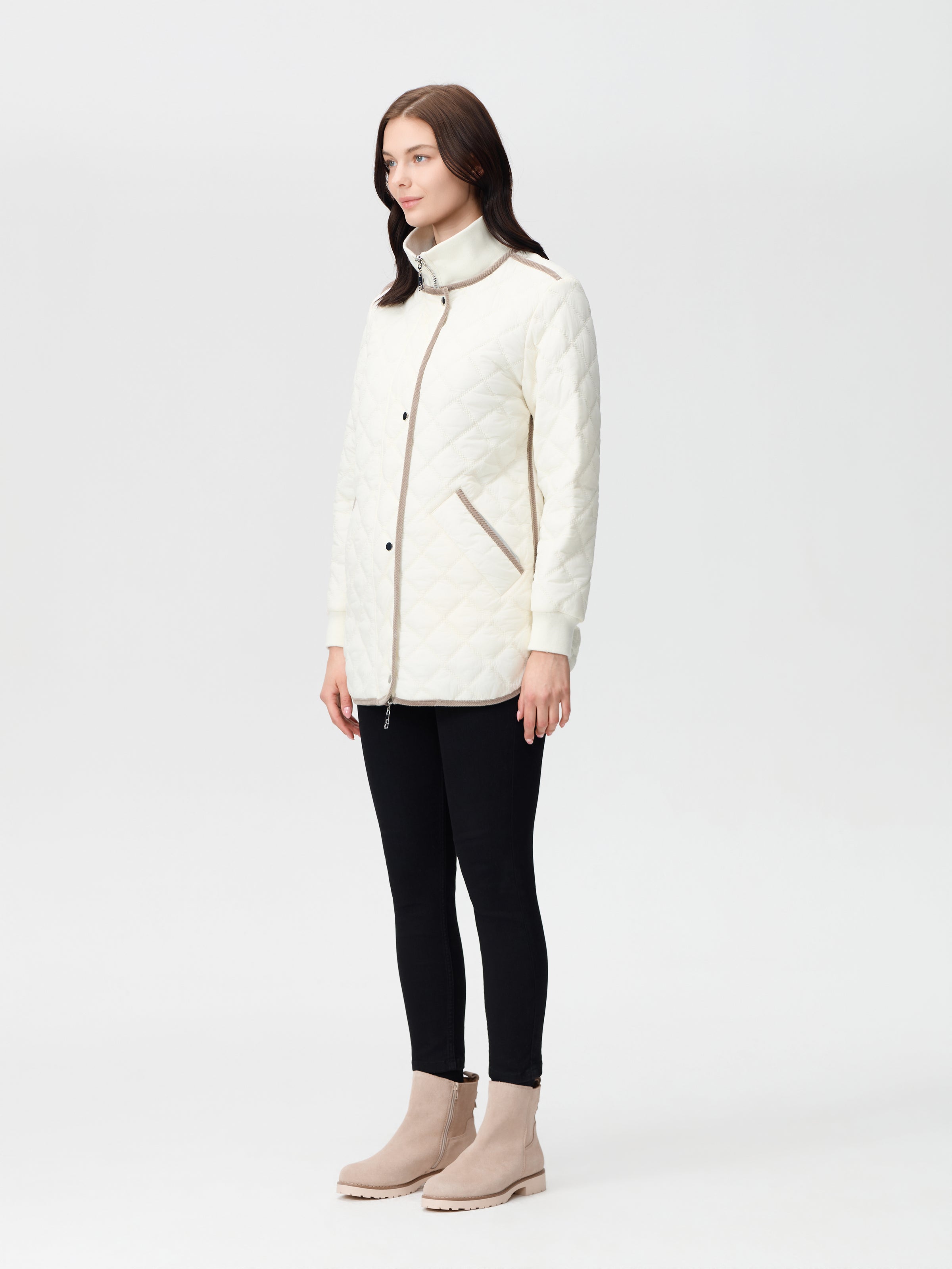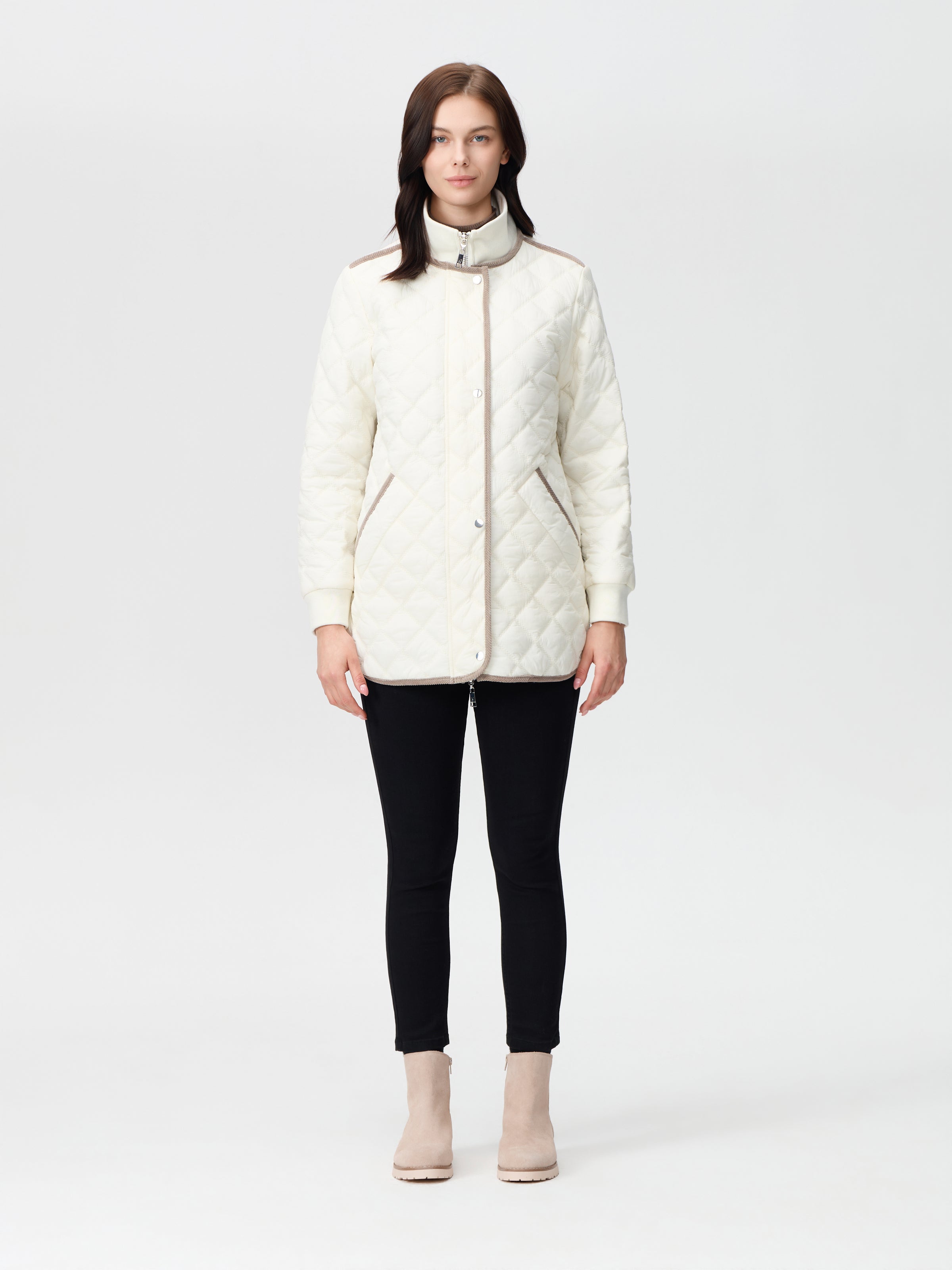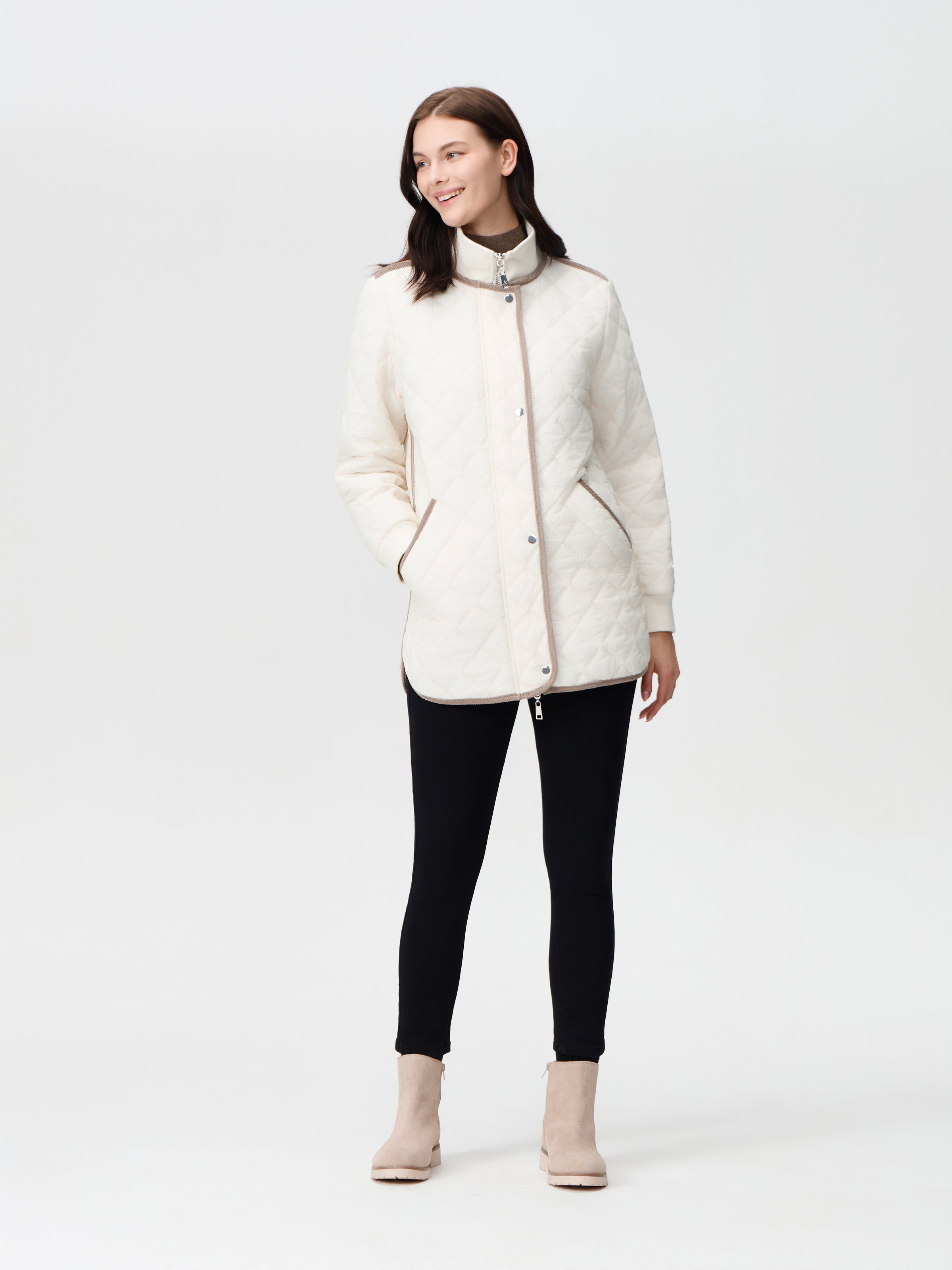 Light weight quilted jacket with contrast corduroy trim