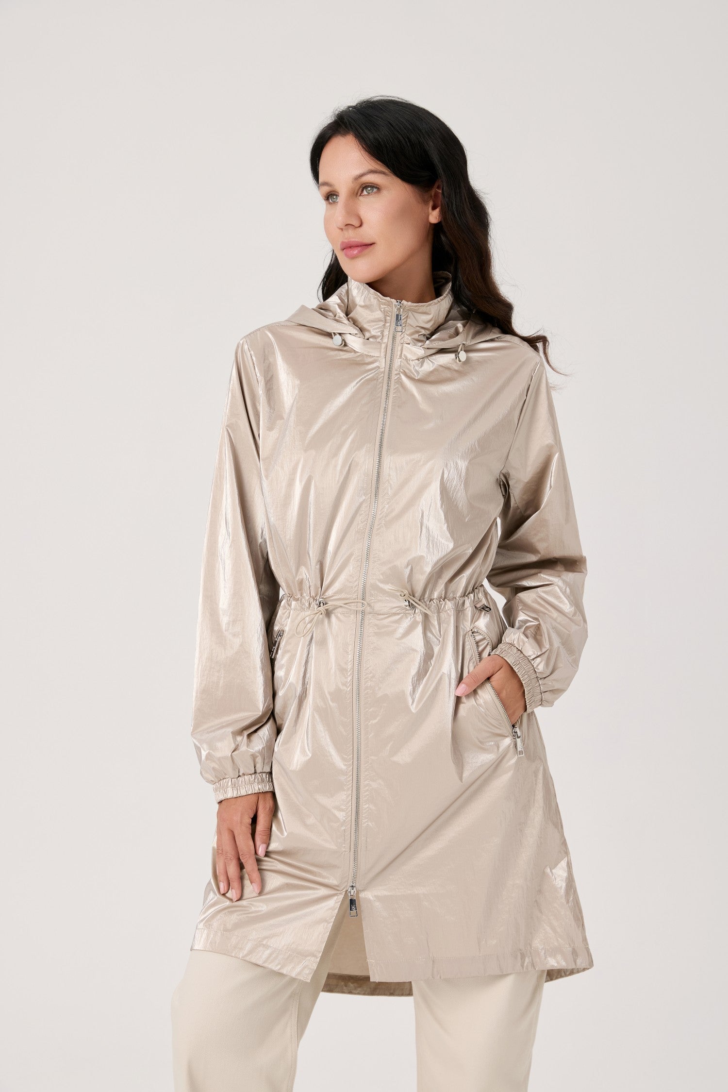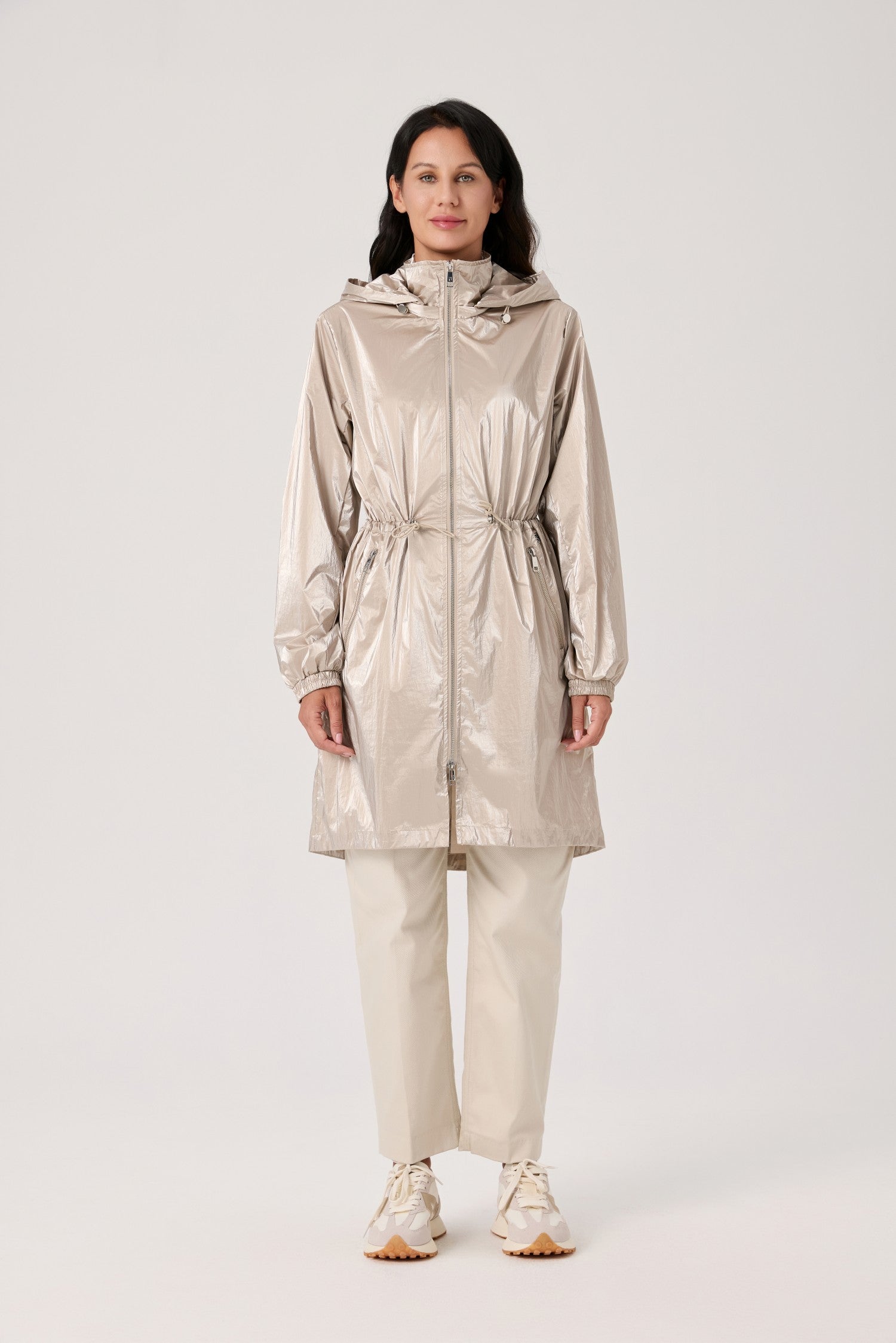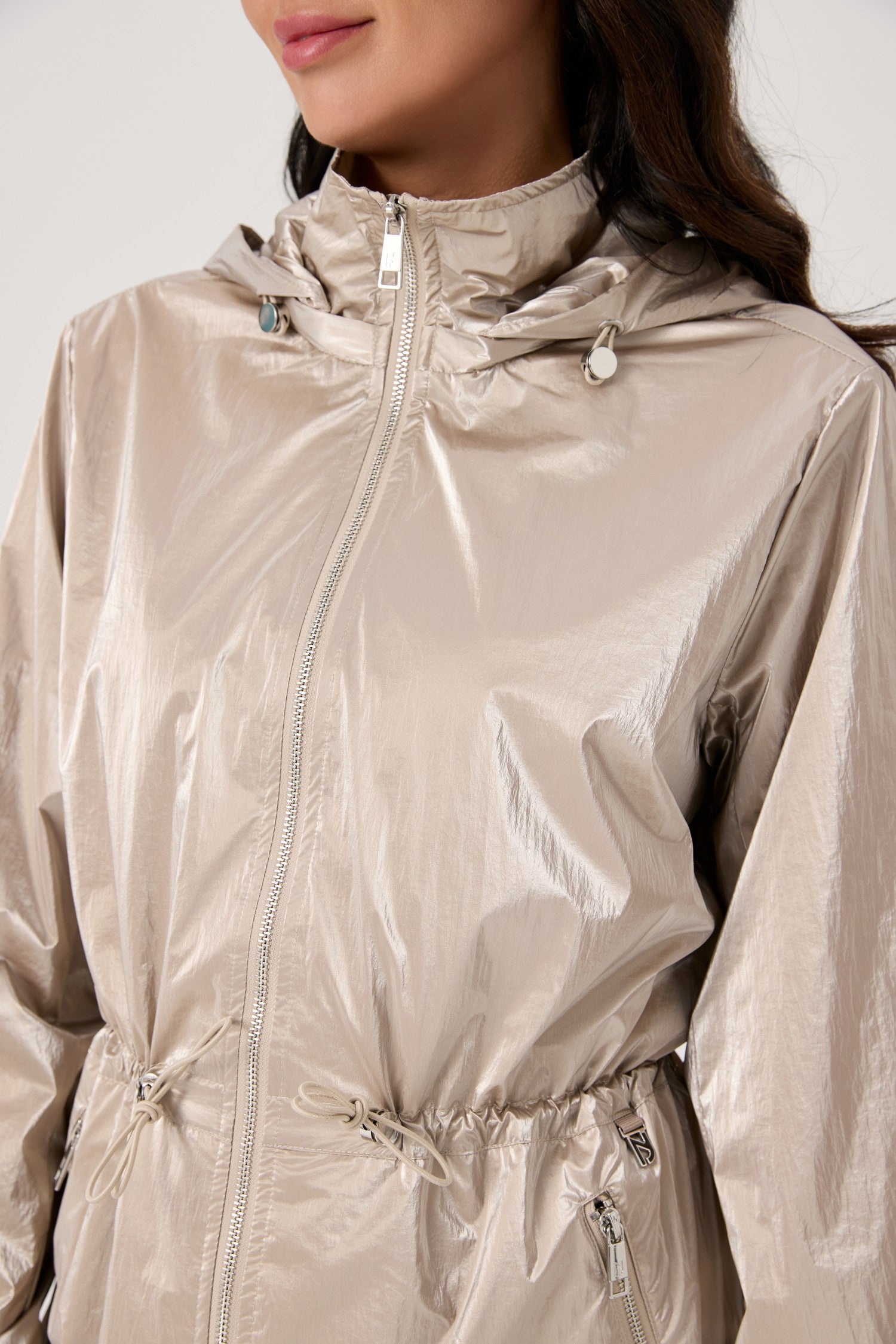 Nikki Jones Shimmer Lux Shirtail anorak with removable hood S6016-504 S26