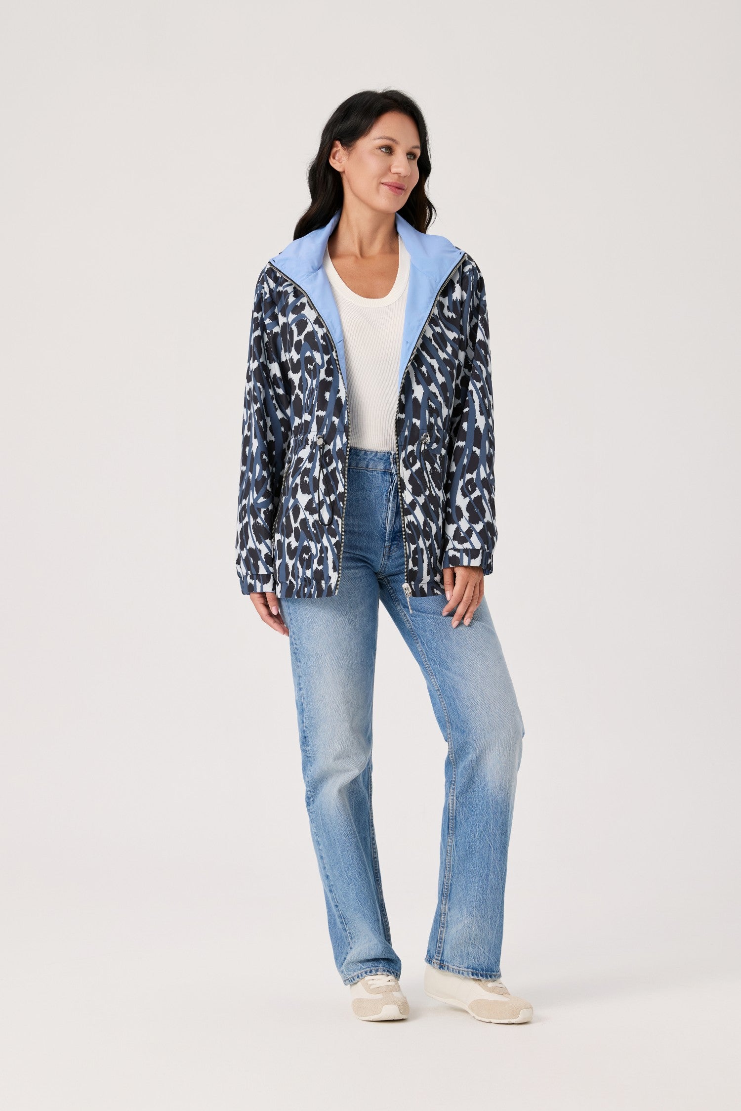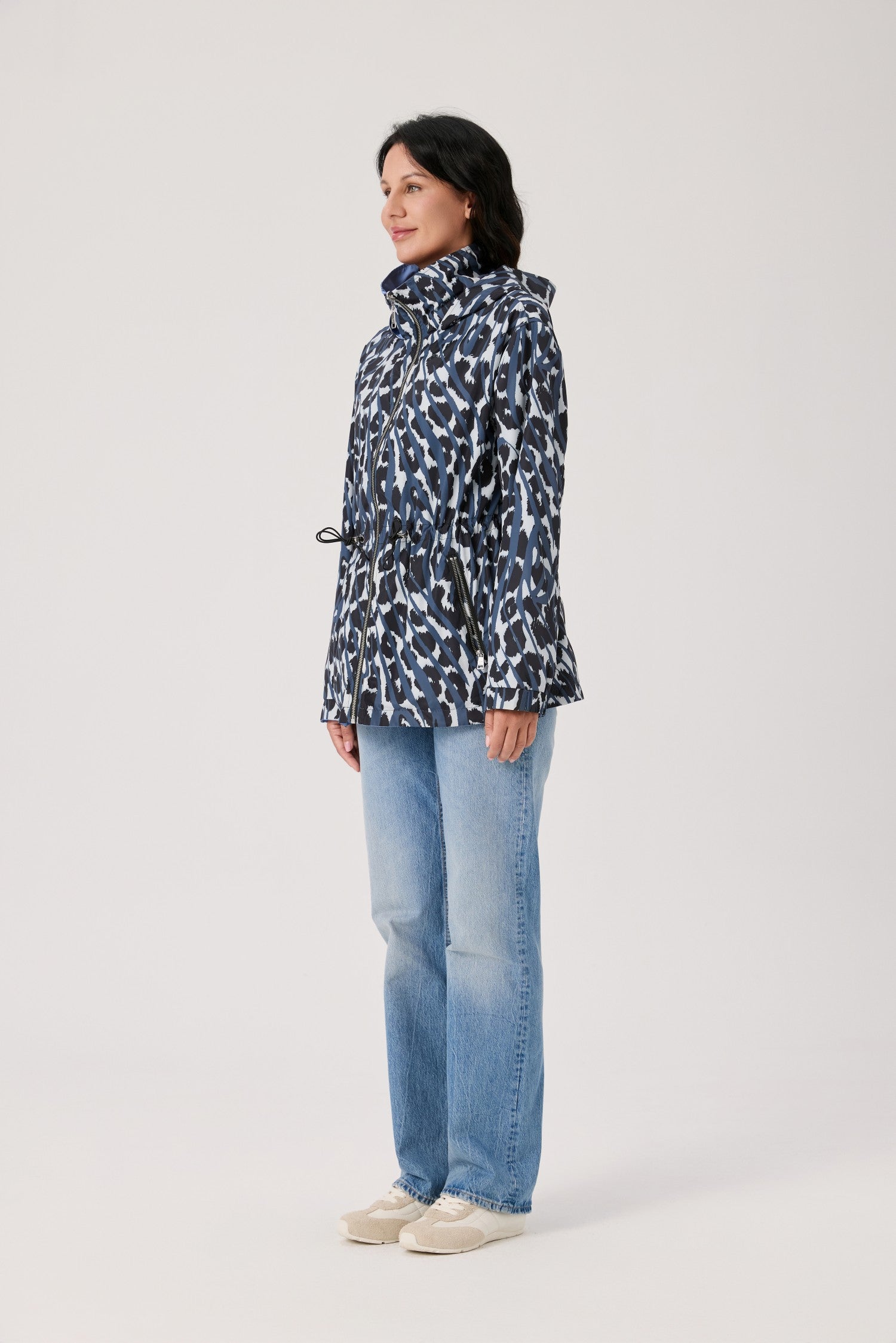 Nikki Jones Waterproof hooded reversible print to solid rain jacket S6017-507 S26