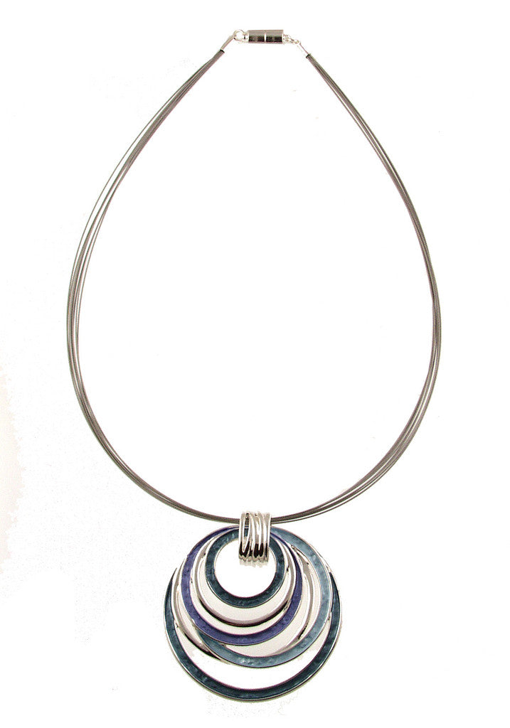 Origin 197-4 - SHINY SILVER/PURPLE COMBI CIRCLES PENDANT - 18"