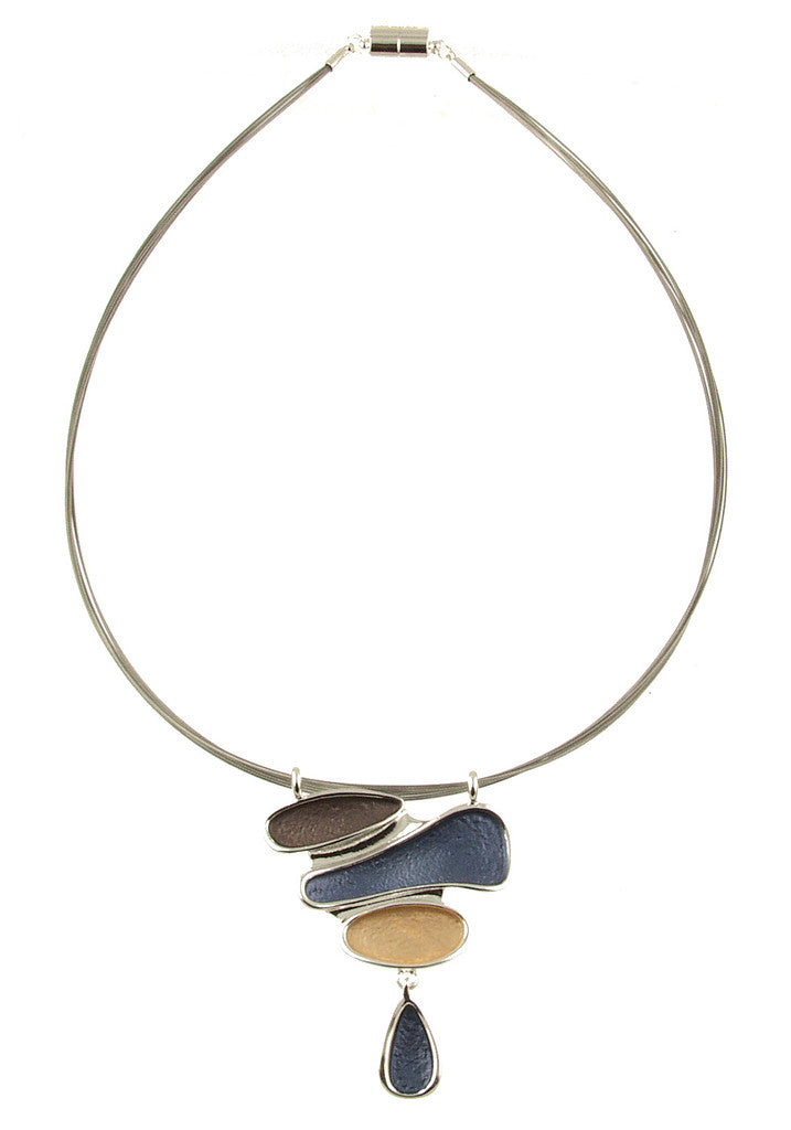 428-28 - MAGNETIC CLASP SHINY SILVER/DARK BLUE-GOLD COMBINATION DROP PENDANT - 18"
