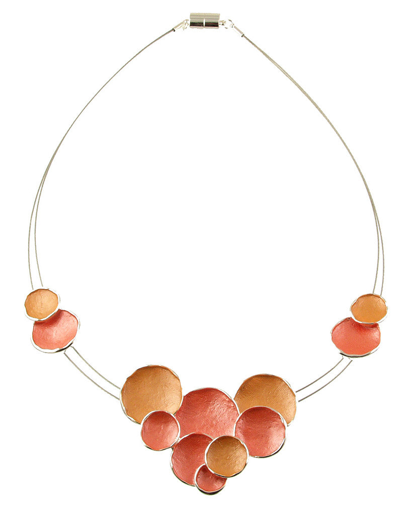 Origin344-5 - MULTI CIRCLE NECKLACE - ORANGE/CORAL COMBINATION 18"