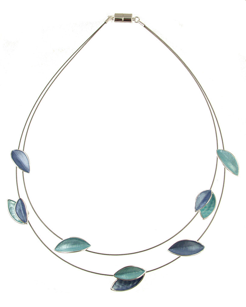 Origin3668-22 - TURQUOISE/DARK BLUE LEAF PETAL NECKLACE 18"
