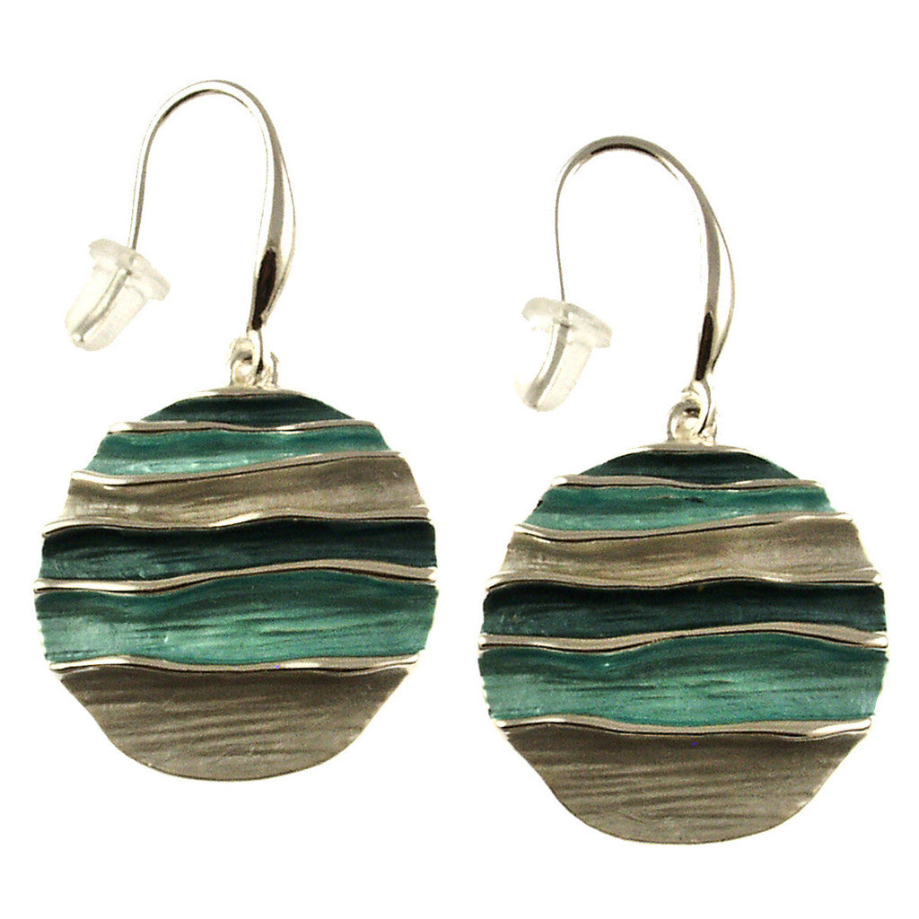 Origin524-2 - SHINY SILVER/BLUE/TEAL WAVES EARRING