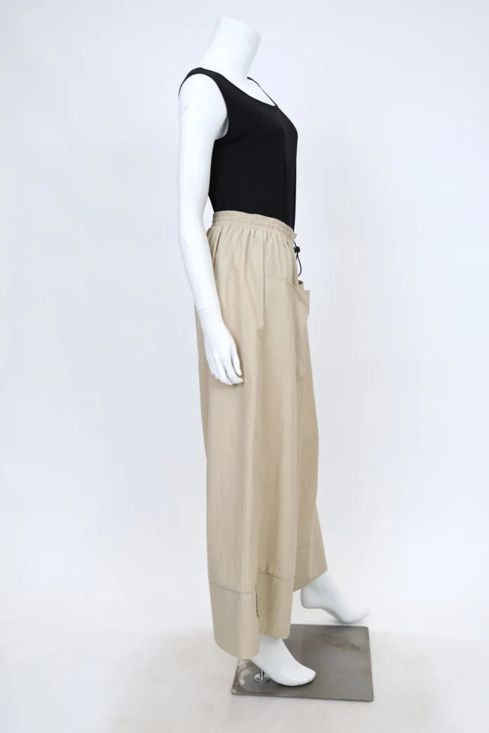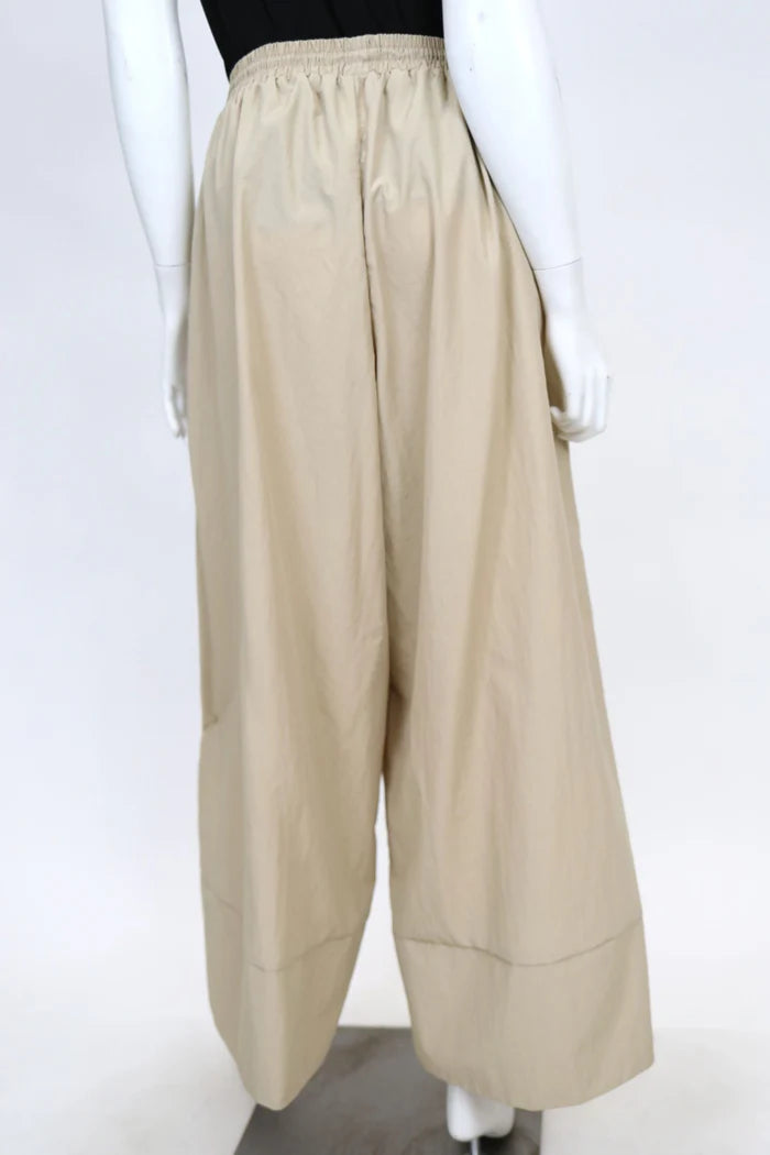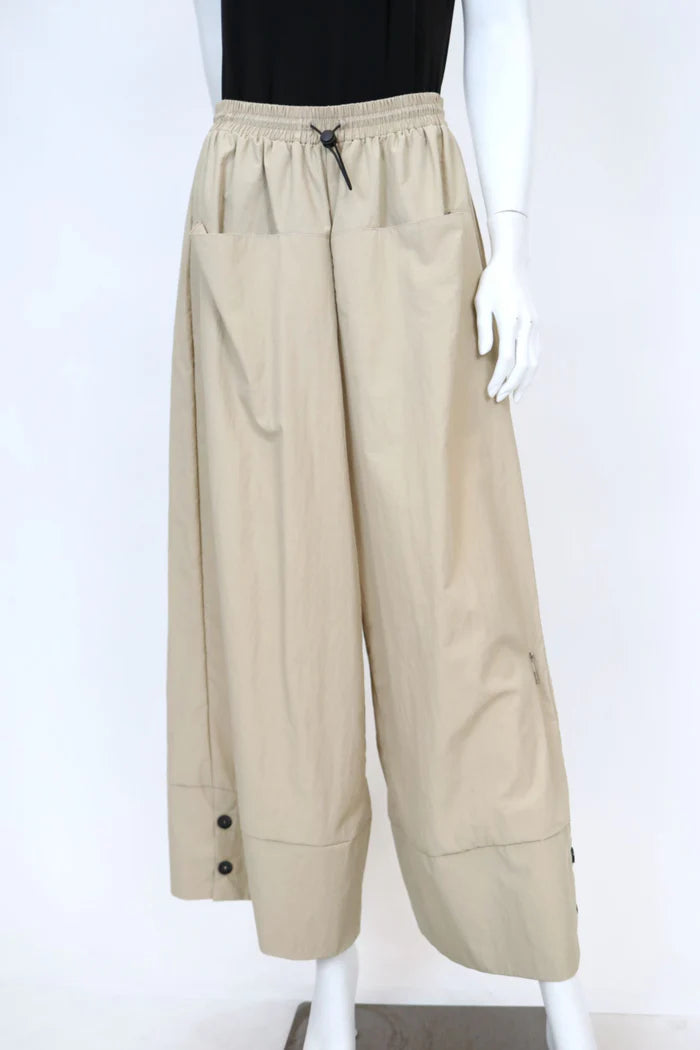 NYLON ELASTIC WAIST WIDE PANTS WITH BUTTON DETAIL