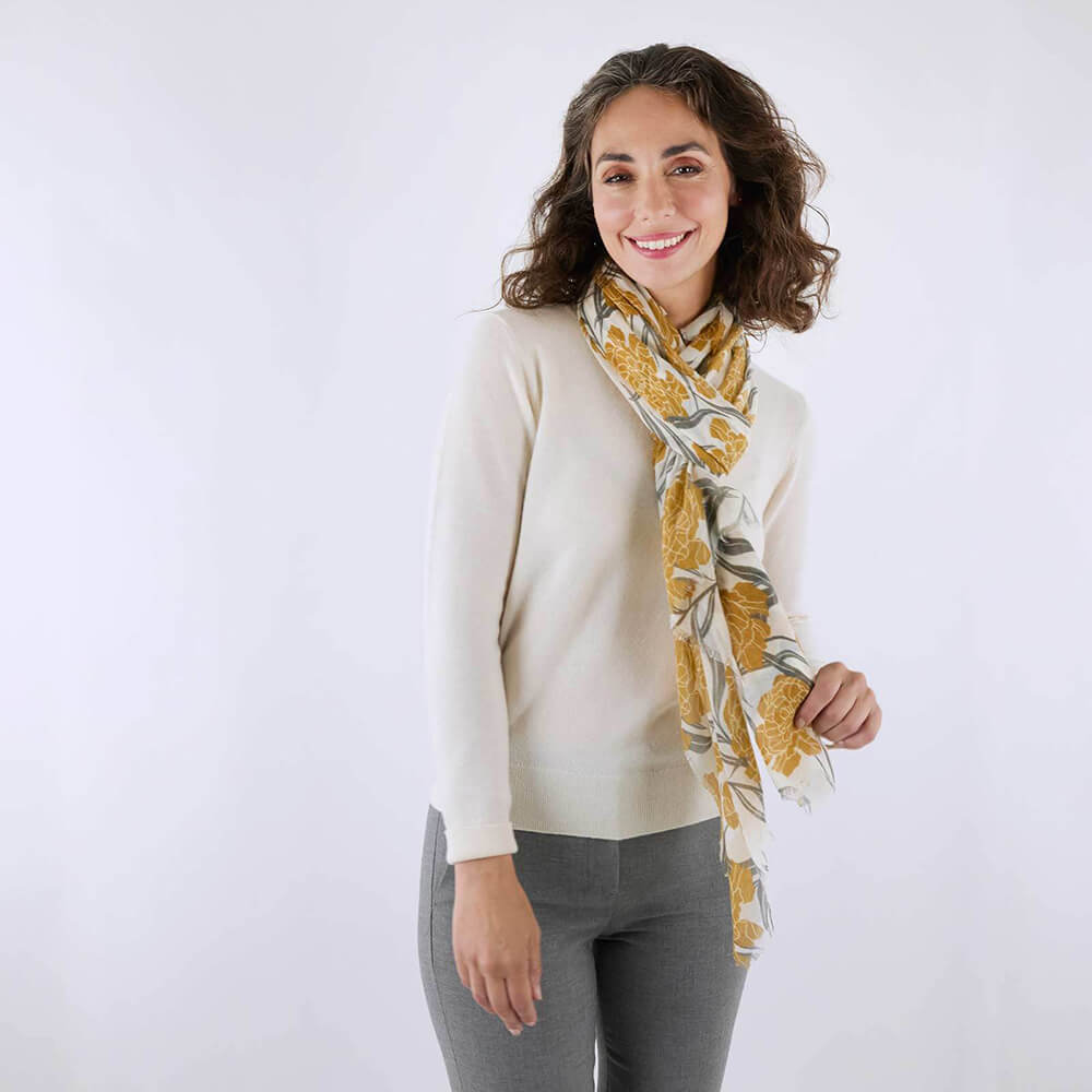 An all-seasons accessory designed to add just the right amount of excitement to an outfit. The versatile Featherweight scarf is made of ultra-soft polyester-viscose blend and generously sized to wrap and drape without bulk. Ideal for styling and layering indoors and outdoors. Makes a wonderful gift as well! • 90% polyester - 10% viscose • featherweight • 37 in x 70 in with 1/2-in eyelash fringe • hand wash.