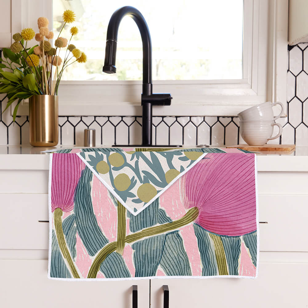 Rockflower Paper Tulip Blooms Eco Kitchen Tea Towel