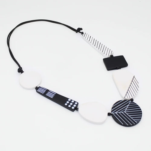 Sylca Black and White Vespera Geometric Statement Necklace LS25N28 BLACK
