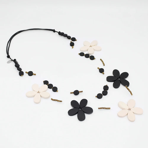 Sylca Black and White Floating Flower Necklace TG25N02 BLACK