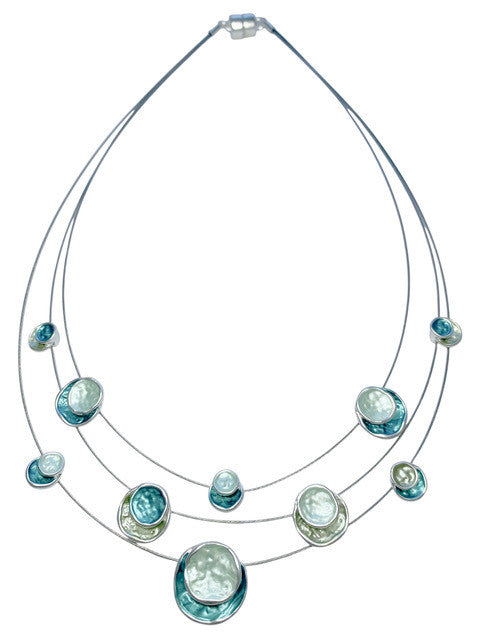 6140-22 - THREE STRANOrigin D CIRCLE 6140-22 - THREE STRAND CIRCLE NECKLACE - AQUA COMBINATION 18" - AQUA COMBINATION 18"