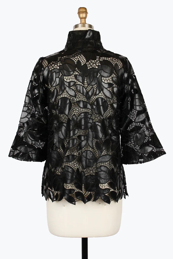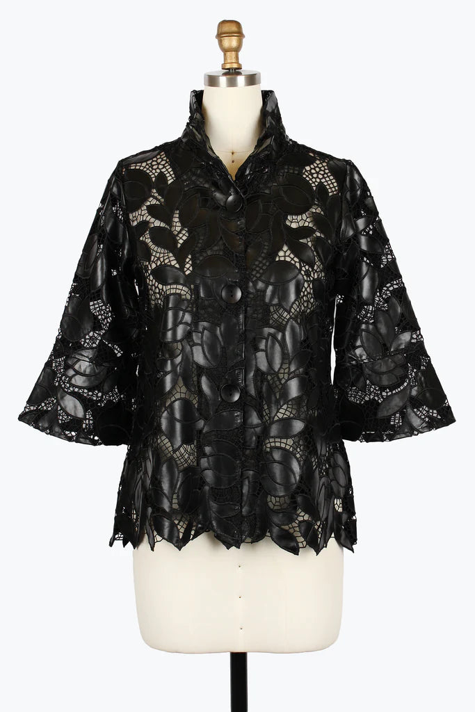 Damee 2479-BLK FLORAL PLEATHER LACE JACKET