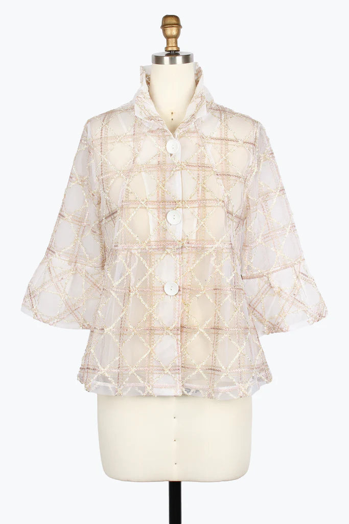 Damee 2484-RGD METALLIC CHENILLE PLAID SHORT JACKET