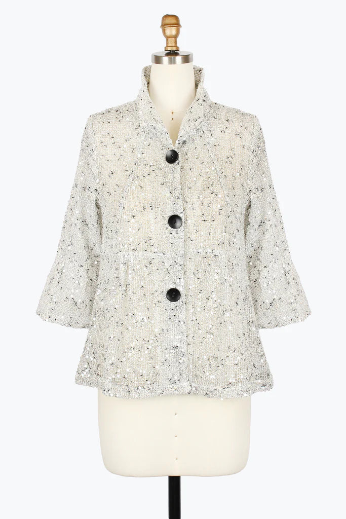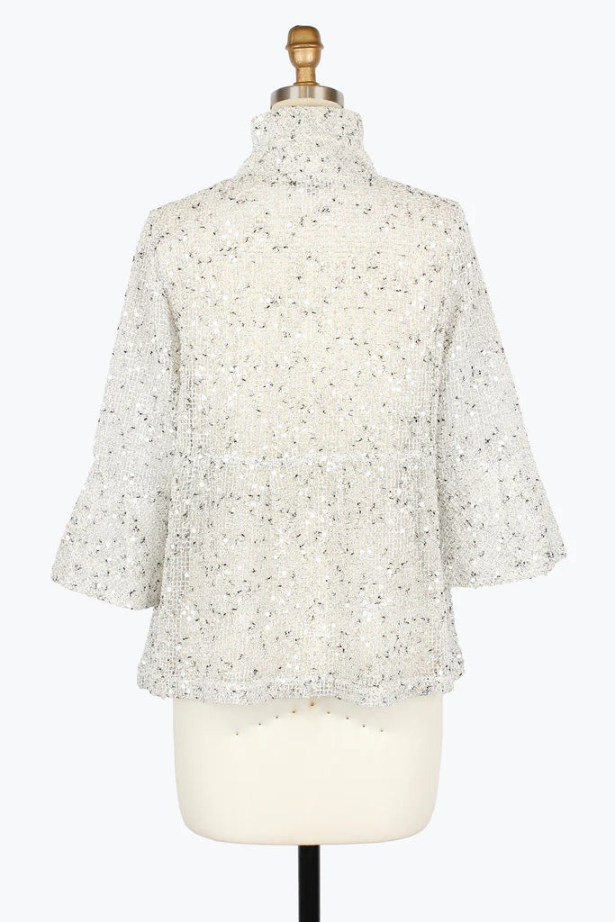 Damee 2485-WHT SEQUINED NET PEPLUM JACKET