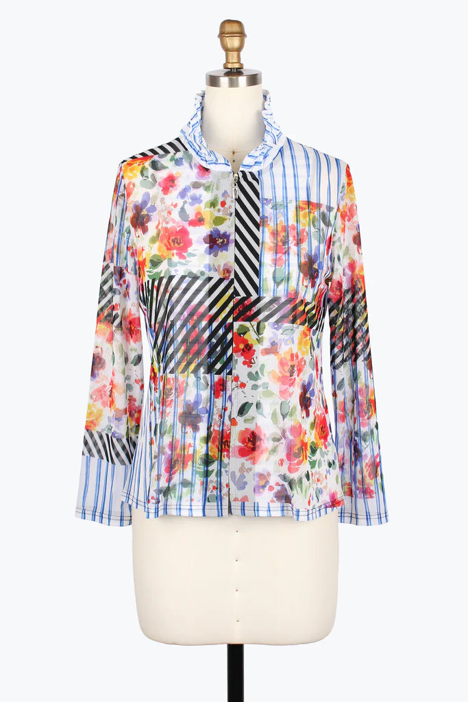 Jacket: Printed mesh fabric, zip-up closure, wired standing collar, long sleeves