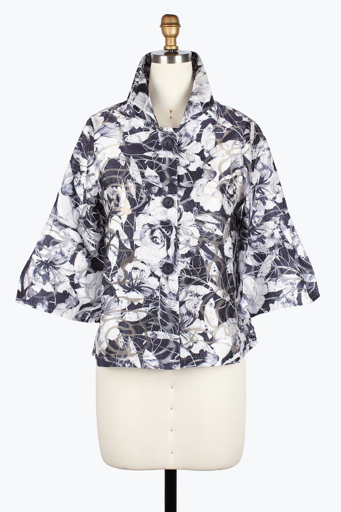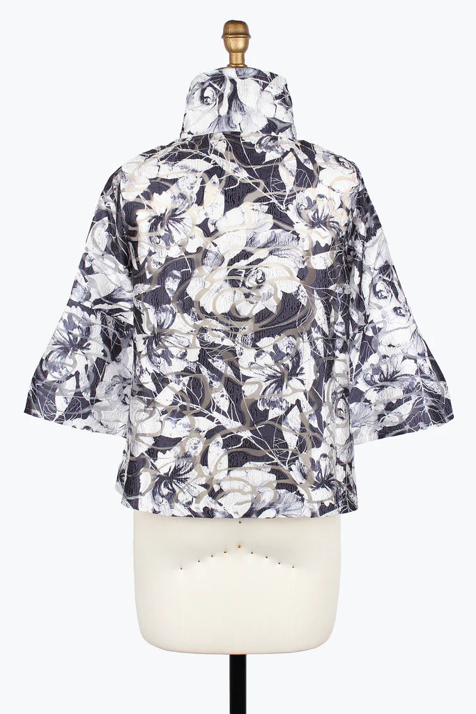 Damee2482-NVY FLORAL BURNOUT JACQUARD SHORT JACKET