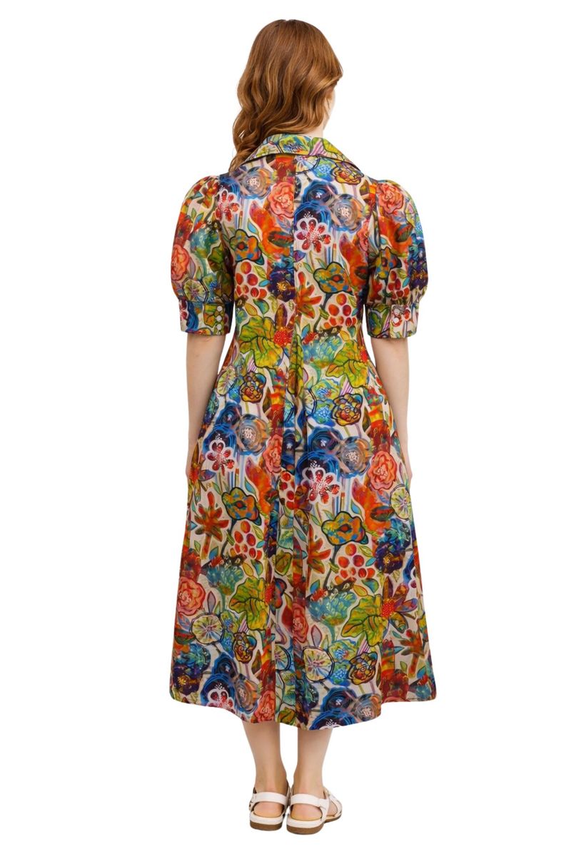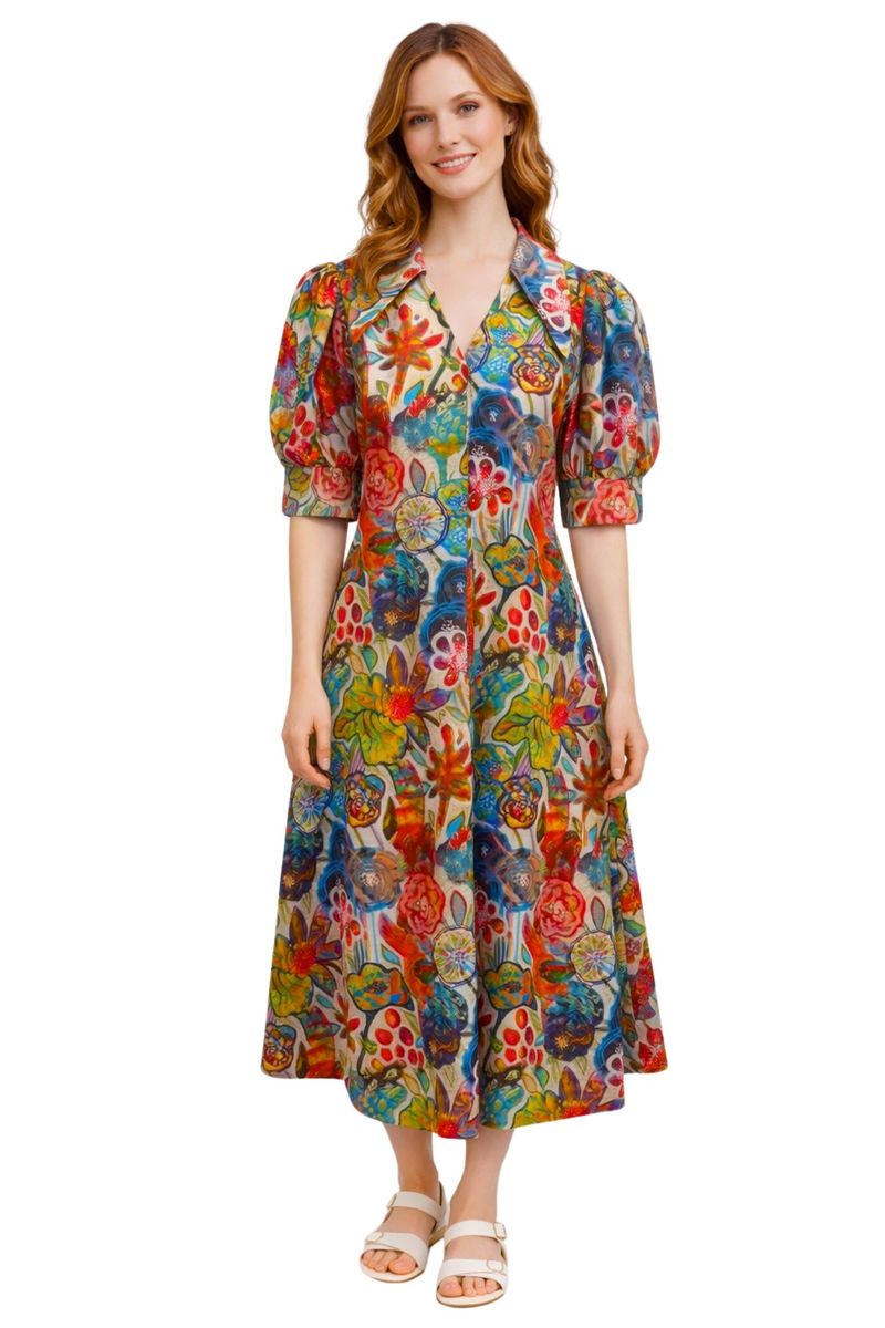 Pointed Collar Panel Dress In Multi Floral Print