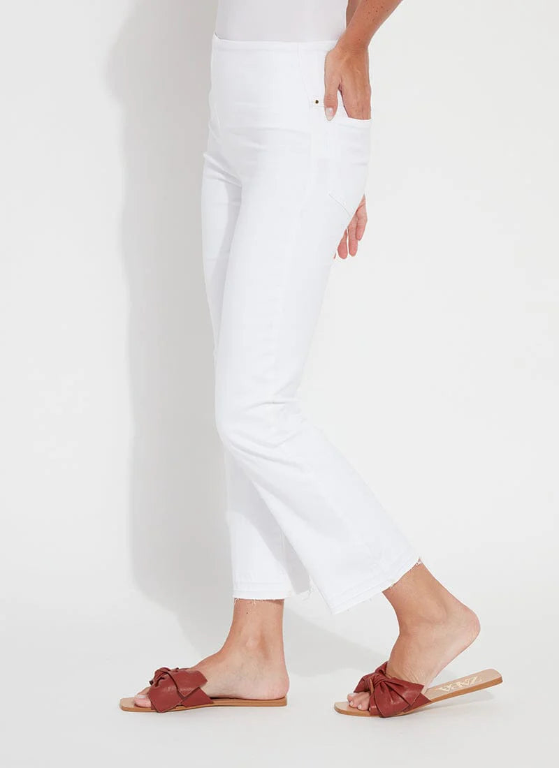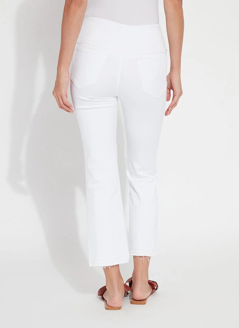 These premium bootcut jeans showcase two-toned tobacco topstitching, traditional 5-point back pockets with metal studs, and a natural fringe hem. Complete with our Lyssé exclusive patented concealed waistband for added comfort, two-way stretch 'Holding Power', and effortless pull-on styling.