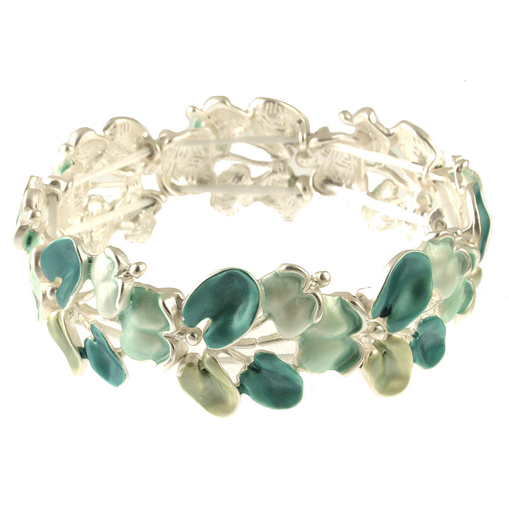 Origin 1440-3 - MATTE SILVER/AQUA TONE FLORAL STRETCH BRACELET