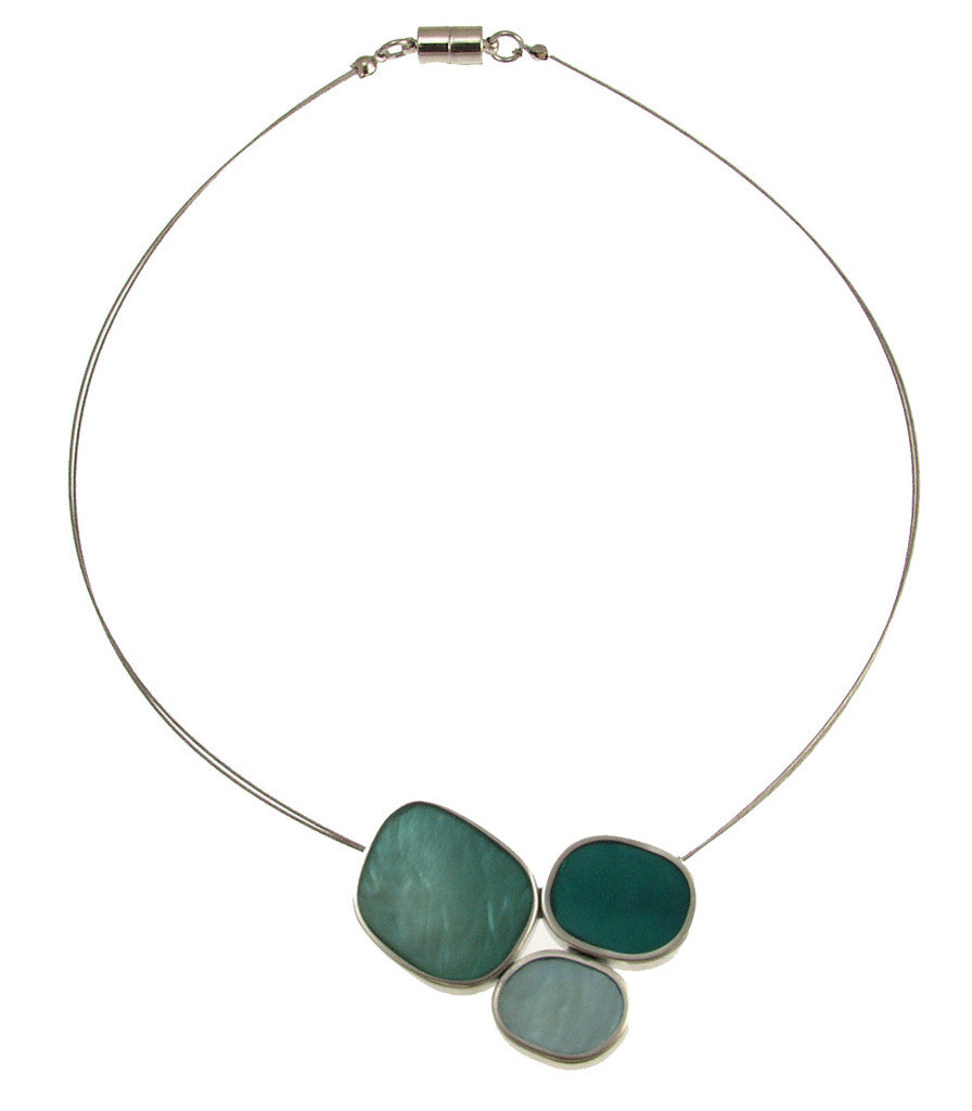 Origin 2011-33 - RESIN/ALUM TWO TONE MAGNETIC CLASP PENDANT - 17" MERMAID GREENS COMBI