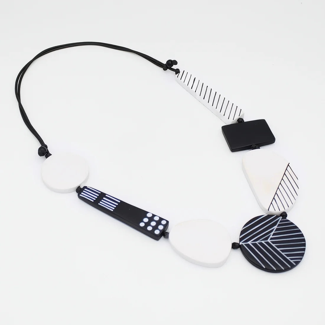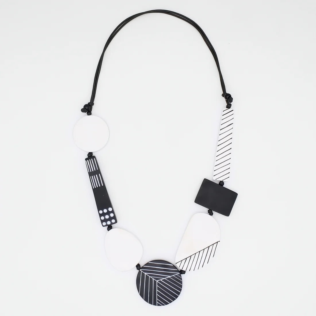 Sylca Black and White Vespera Geometric Statement Necklace LS25N28 BLA