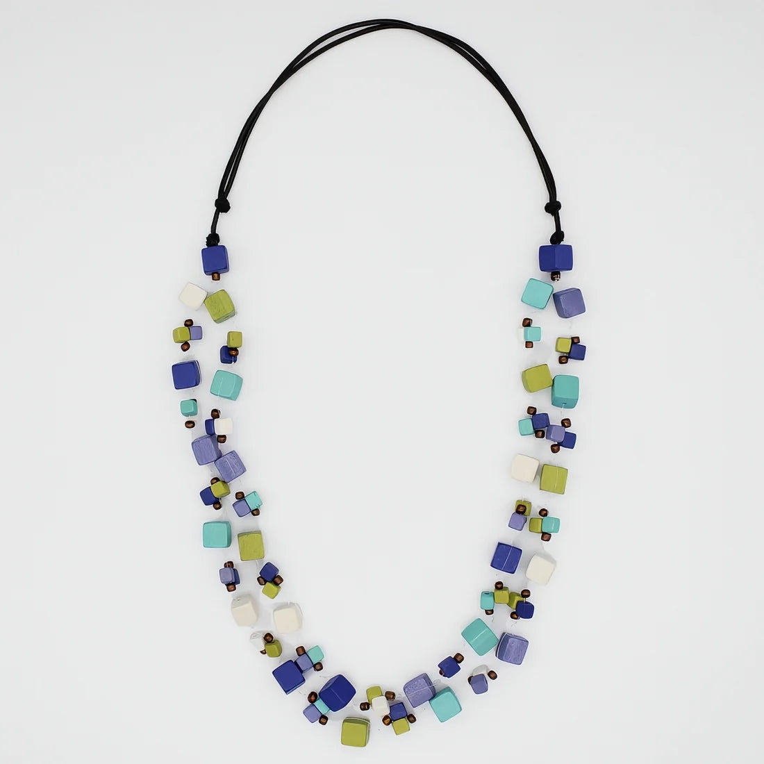 Introducing the Lia Floating Bead Necklace. Made with small wood beads in wine, taupe, and gold; this necklace features a lightweight and adjustable cord, creating a multi-strand, floating invisible chain. Elevate your wardrobe with this elegant and exclusive double-strand piece.